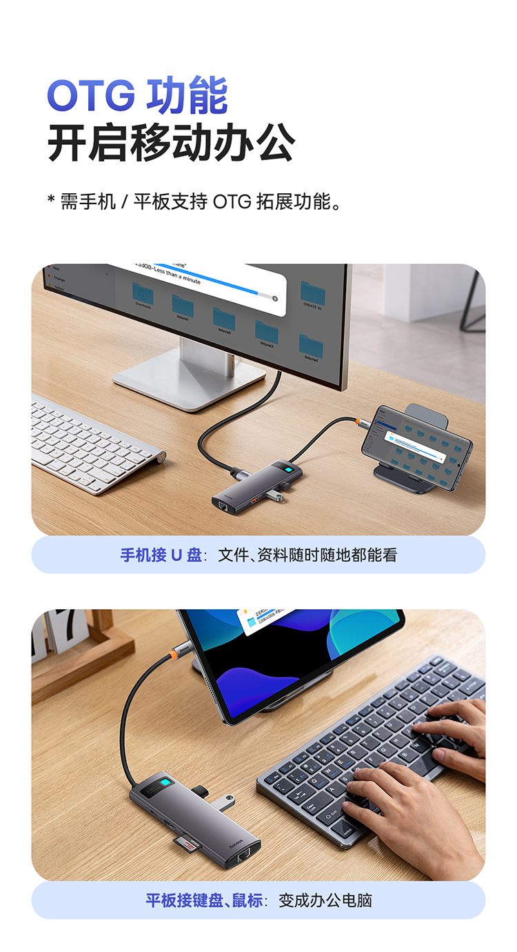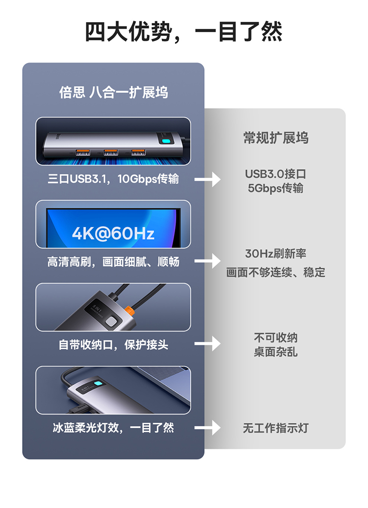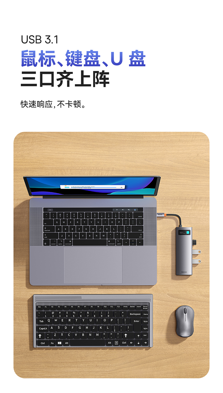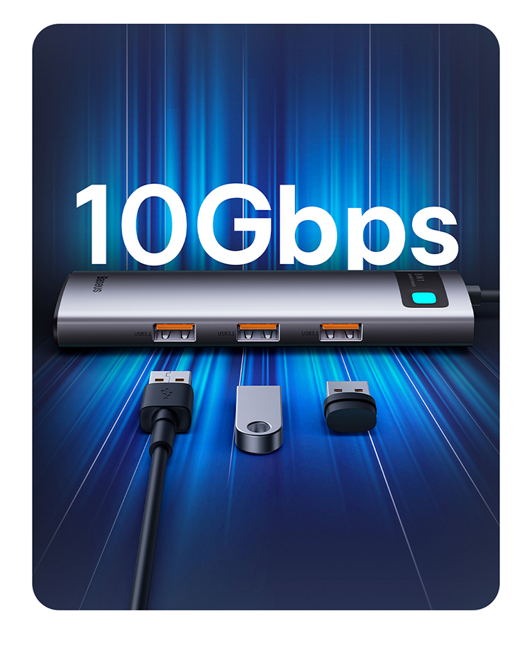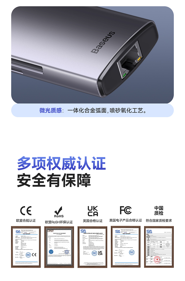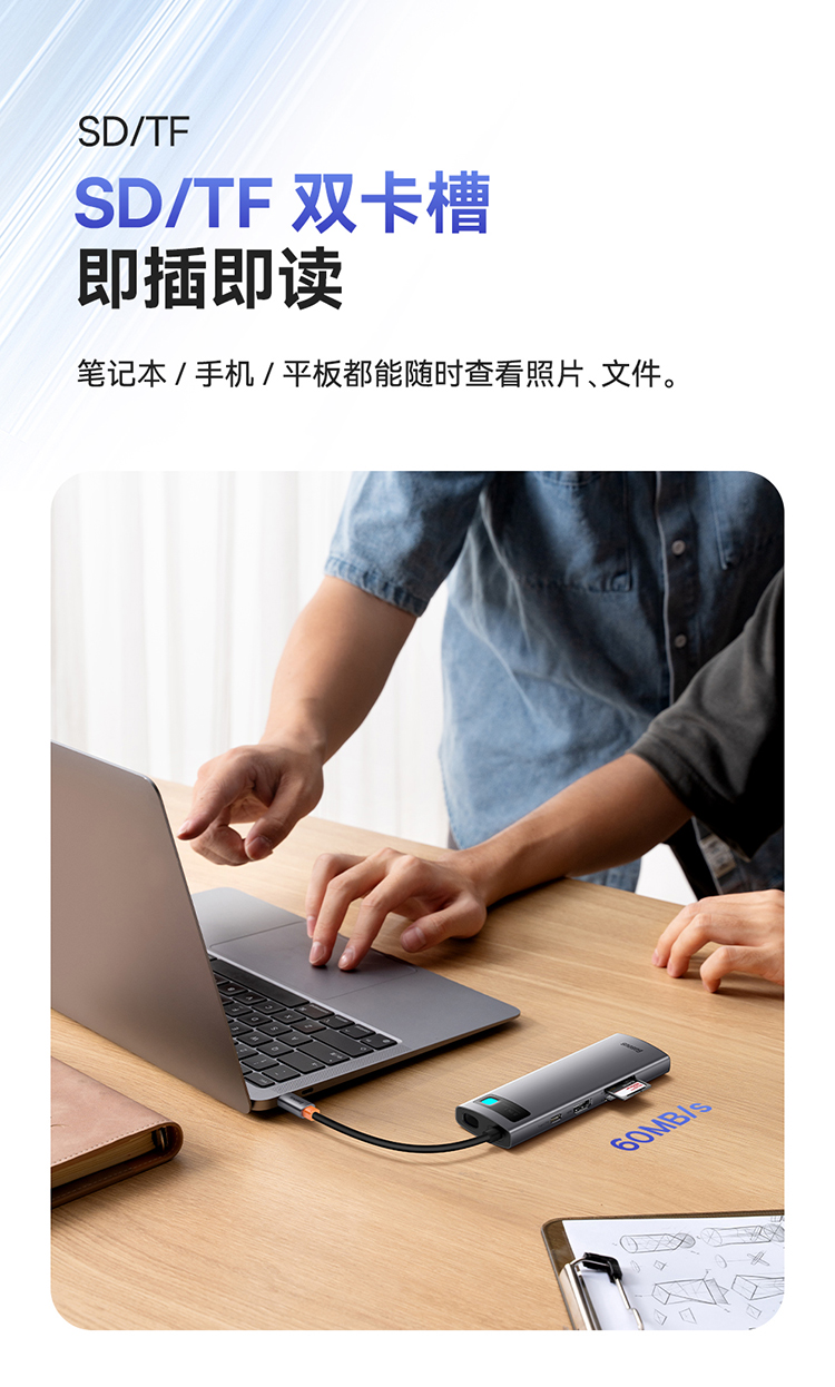 倍思 金属微光系列 八合一多功能Type-C HUB 扩展坞 深空灰(Type-C to HDMI4K@60Hz*1+USB3.1*3+PD*1+RJ45*1+SD/TF*1)