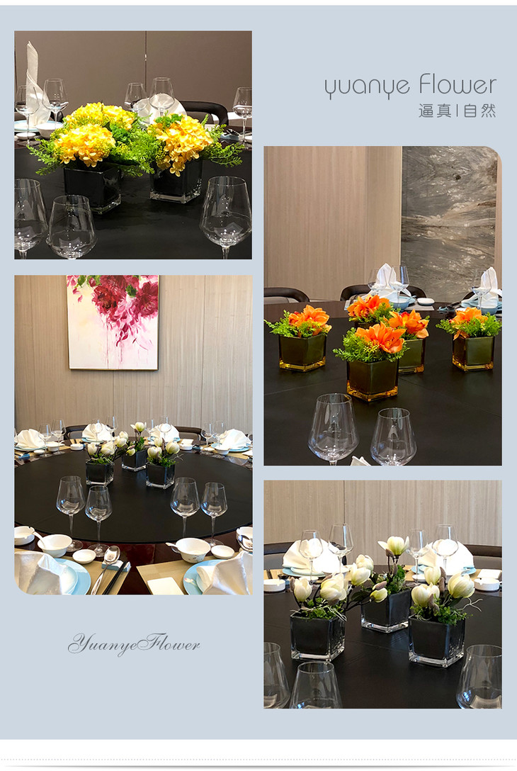酒店餐桌仿真花圆形组合北欧简约圆桌转盘餐厅茶几会议所绢花假花