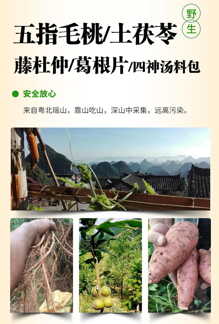 野生五指毛桃/土茯苓/牛奶根/藤杜仲/牛大力/葛根片【基地直发】