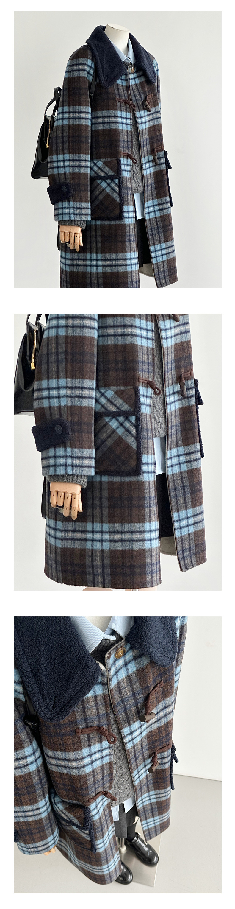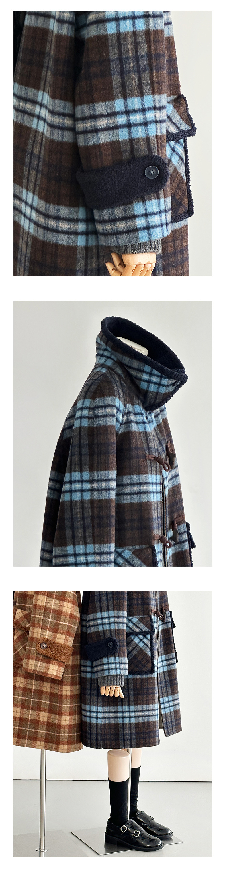 【复古格调】24新款咖蓝格复古时尚牛角扣设计师韩系毛呢大衣外套!