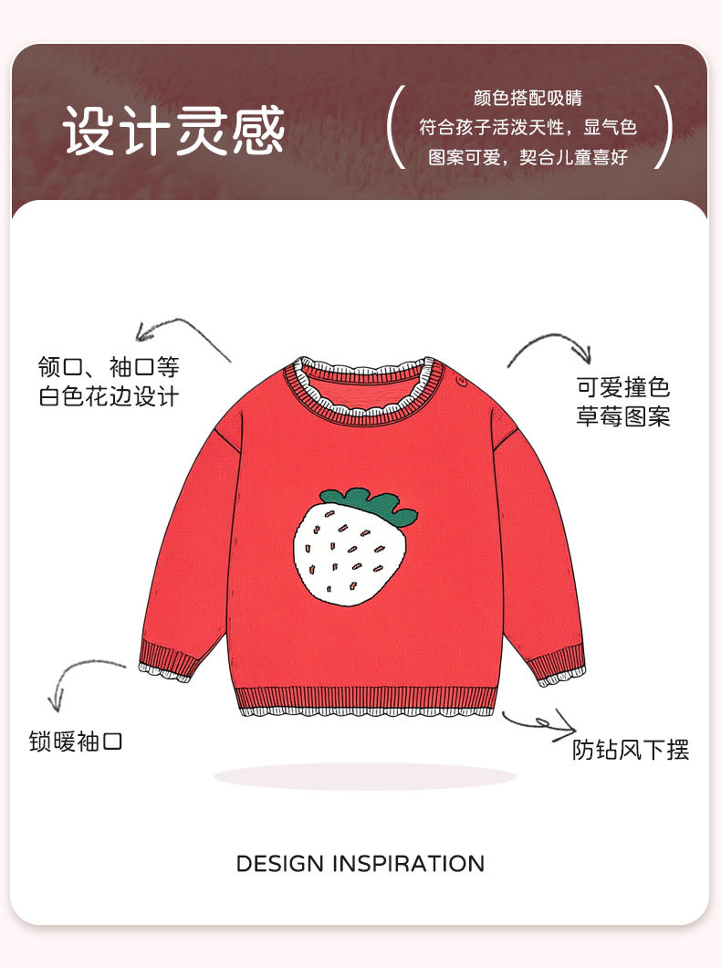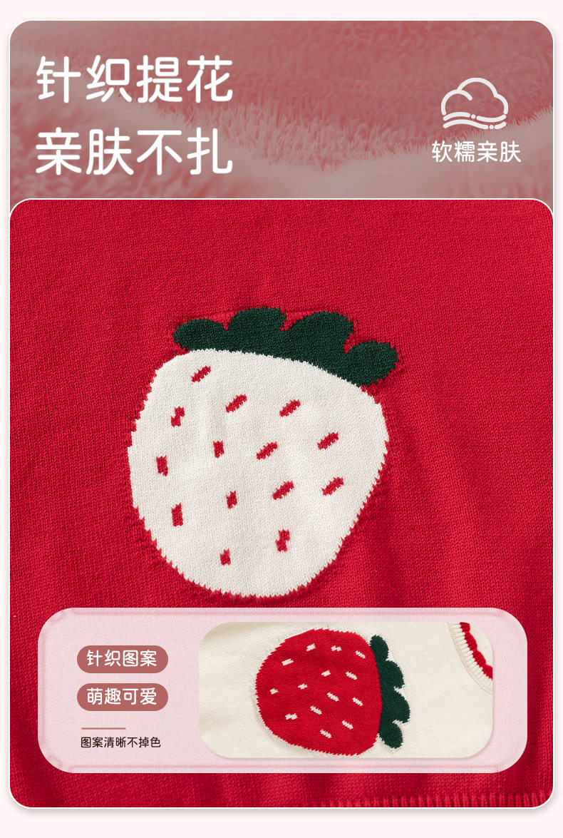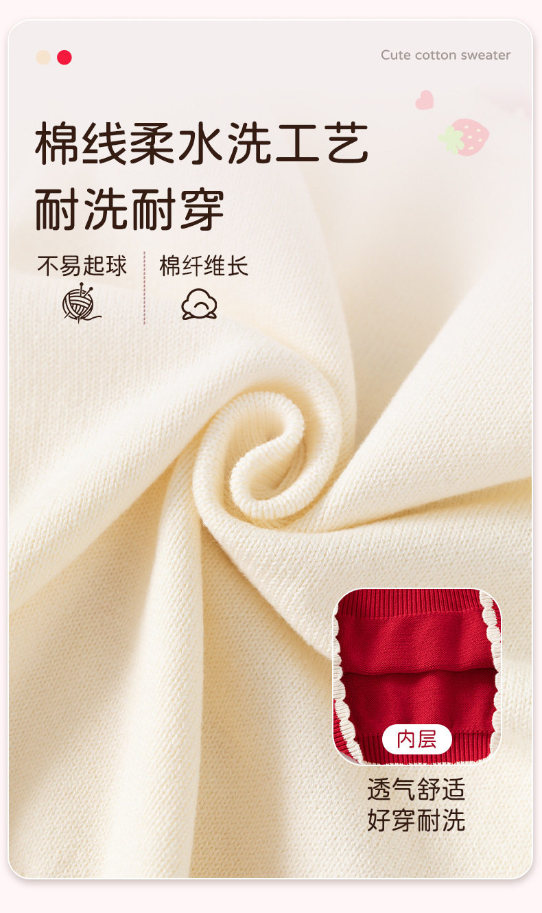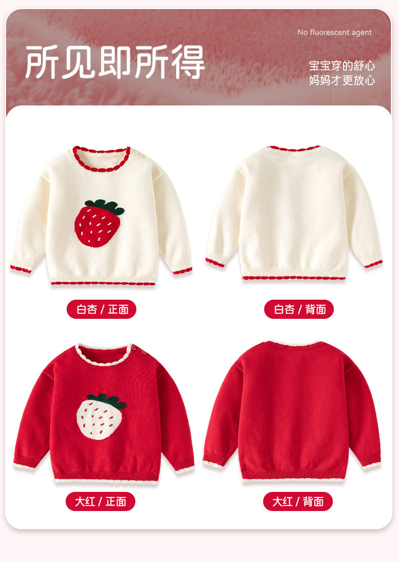 可爱草莓提花纯棉A类婴儿毛衣秋冬花边领口针织柔软甜美女童上衣 商品图4