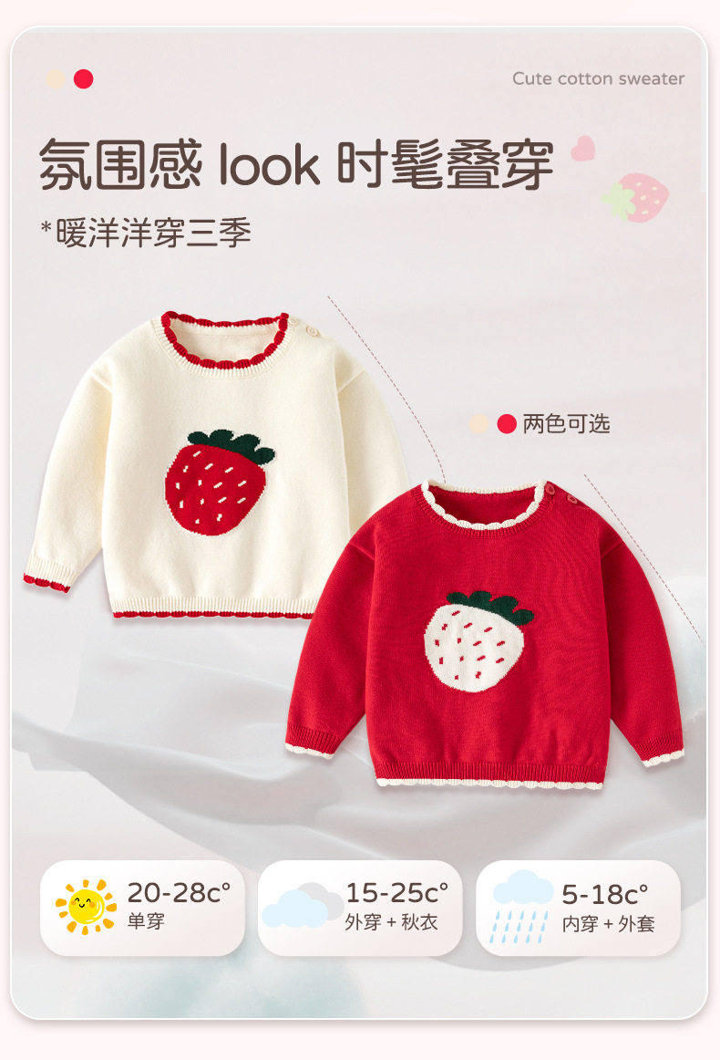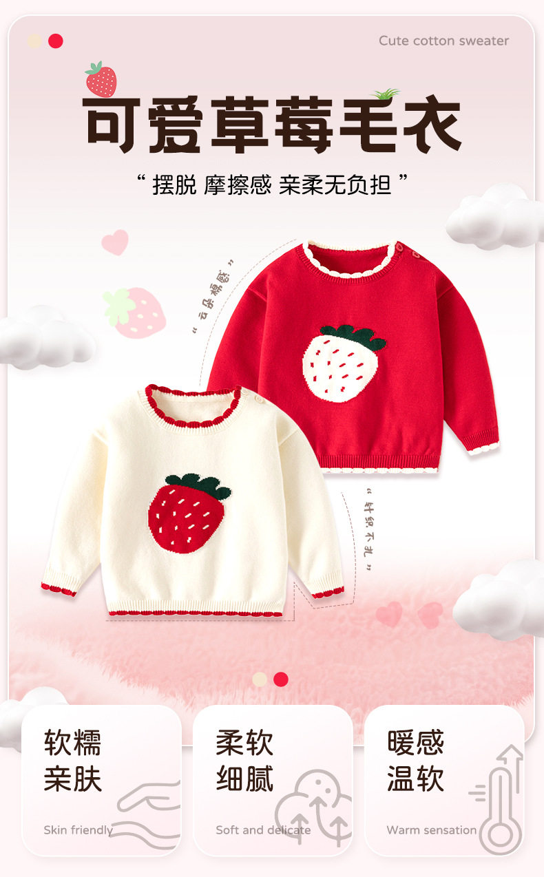 可爱草莓提花纯棉A类婴儿毛衣秋冬花边领口针织柔软甜美女童上衣