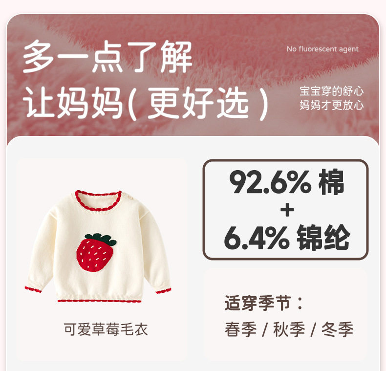 可爱草莓提花纯棉A类婴儿毛衣秋冬花边领口针织柔软甜美女童上衣 商品缩略图0 可爱草莓提花纯棉A类婴儿毛衣秋冬花边领口针织柔软甜美女童上衣 商品缩略图1 可爱草莓提花纯棉A类婴儿毛衣秋冬花边领口针织柔软甜美女童上衣 商品缩略图2 可爱草莓提花纯棉A类婴儿毛衣秋冬花边领口针织柔软甜美女童上衣 商品缩略图3 可爱草莓提花纯棉A类婴儿毛衣秋冬花边领口针织柔软甜美女童上衣 商品缩略图4