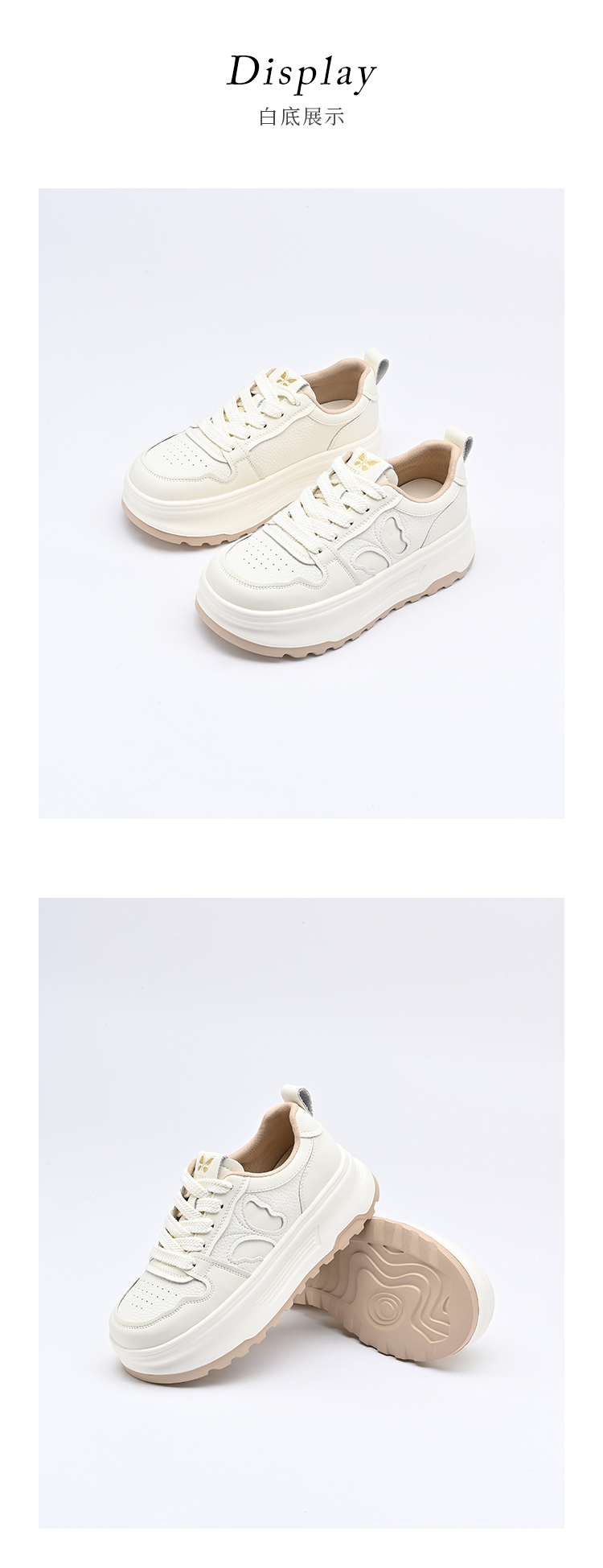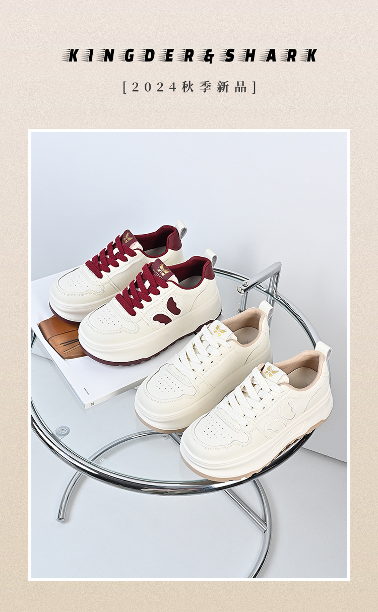 经典鲨2024年秋新款韩版牛皮革时尚拼色平底休闲鞋小白鞋女KW310-D37011