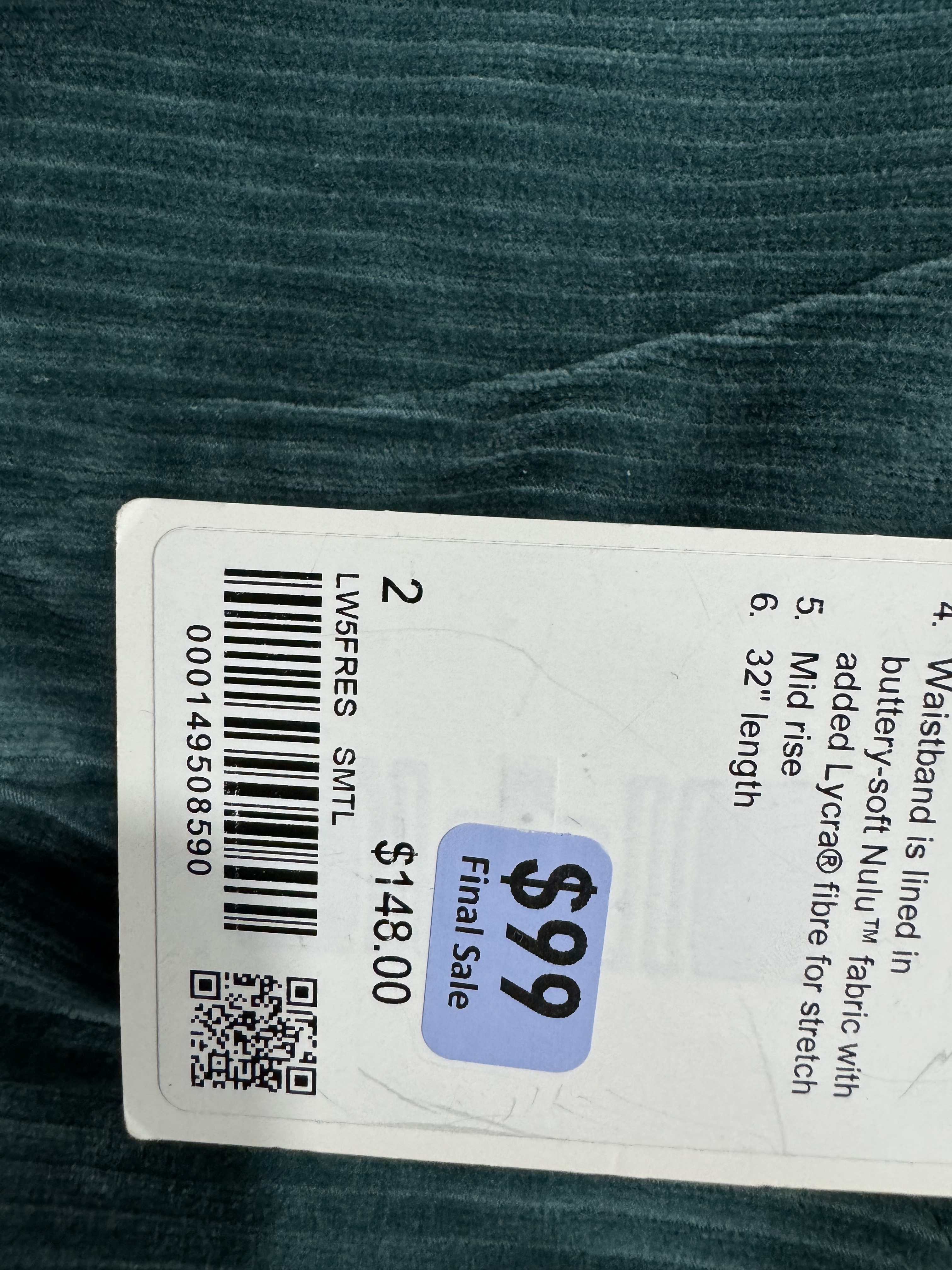 瑕疵Lululemon/露露乐檬 Scuba 女士32英寸灯芯绒速干柔软中腰阔腿裤