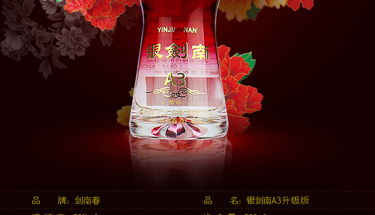 2015年 银剑南A3 浓香型白酒 500ml(52度)
