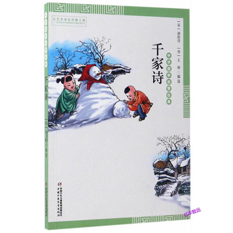 《千家诗》是我国古代带有启蒙性质的诗歌选本。现在通行的版本是由宋代谢枋得《重订千家诗》和明代王相所选《五言千家诗》合并而成的,共22卷,包含1281首诗,均为律诗和绝句。《千家诗》所选诗歌大都是唐宋时期的经典名篇,题材十分丰富,广泛反映了唐宋时代的社会状况。所选诗歌大都是唐宋时期的经典名篇,题材十分丰富,广泛反映了唐宋时代的社会状况。《千家诗》与《三字经》《百家姓》《千字文》合称“三百千千”,在民间流传非常广泛,是明清时期特别受欢迎的国学启蒙读物之一。本书选用的《千家诗》版本是目前通行、被大众认可的版本,摘录了适合小读者阅读和理解的古诗46首,按照诗人出生时间的先后排序,加以注音、注释、翻译,并配上富有教益的小故事,让小读者能更明白、更直接地理解原文、加深印象。