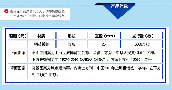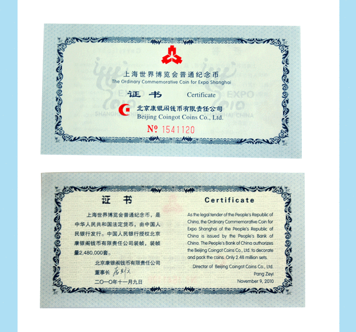 河南中钱 央行 2010年上海世博会流通纪念币 世博币 整卷50枚 单枚