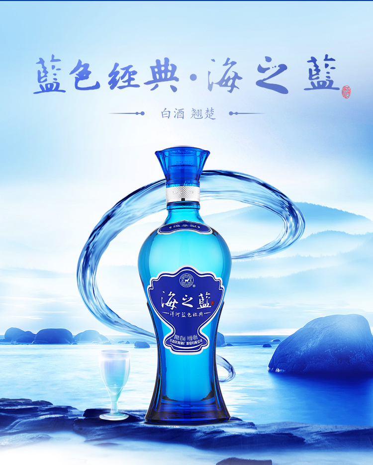 洋河海之蓝 绵柔口感浓香型白酒 480ml(52度 )