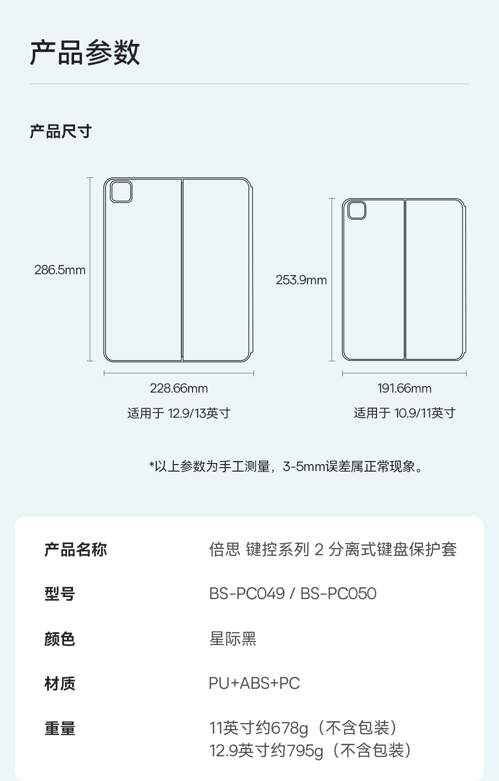 【十一专享】倍思 键控系列 2 分离式键盘保护套 iPad妙控键盘