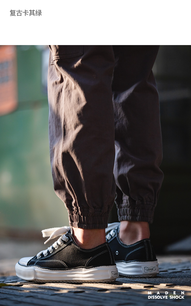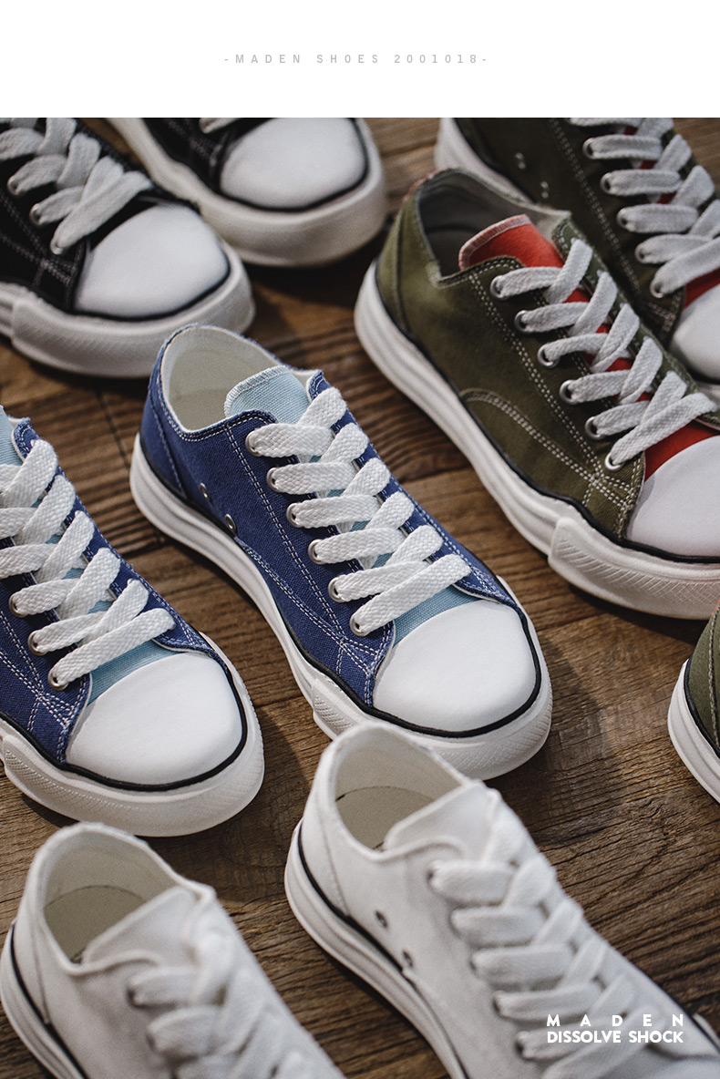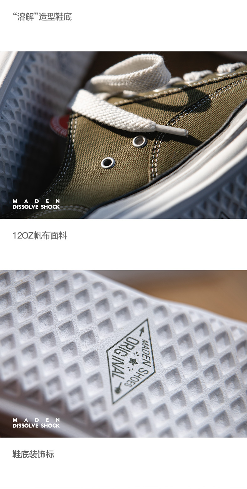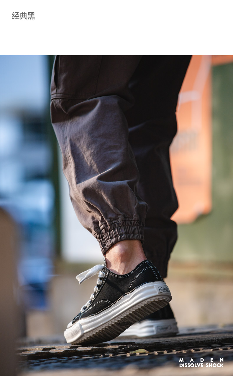 马登2025春季新款帆布鞋男低帮厚底增高休闲百搭小众板鞋溶解鞋子