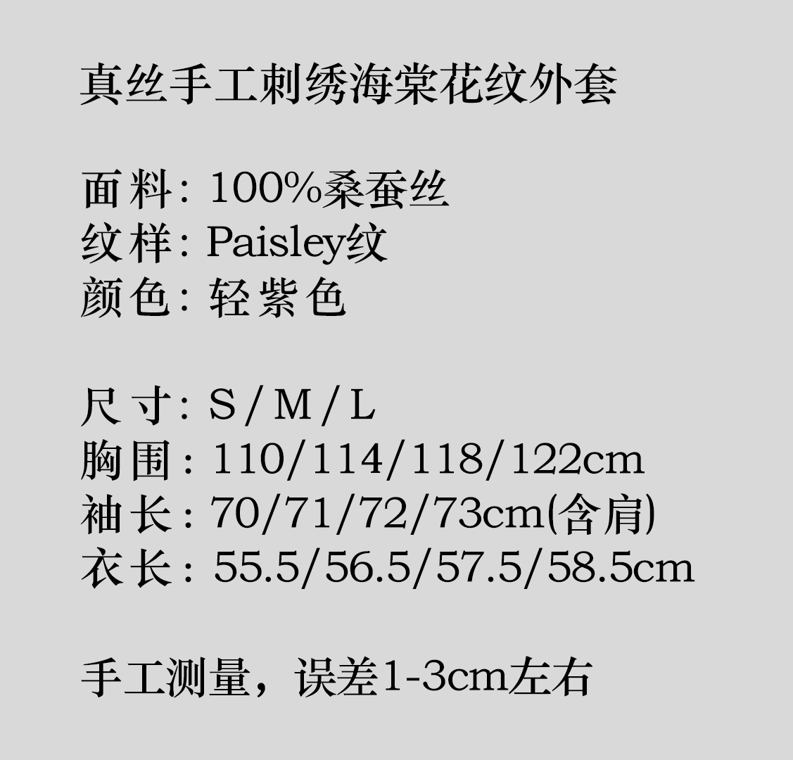 盛唐牡丹 |真丝手工刺绣海棠花纹外套-紫色