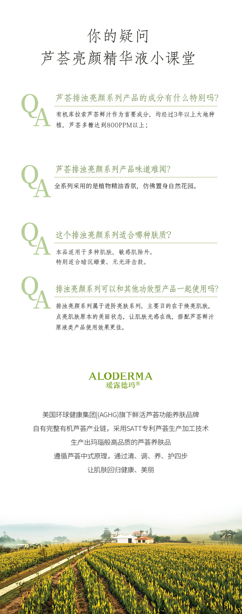 - 瑷露德玛是美国环球健康集团全资子公司台山美环健芦荟制品有限公司旗下的芦荟护肤品牌,我们产品均采用SATT独家专利技术生产,纯新鲜,不添加水,不添加芦荟冻干粉,不添加防腐剂。鲜纯芦荟,自然更美。