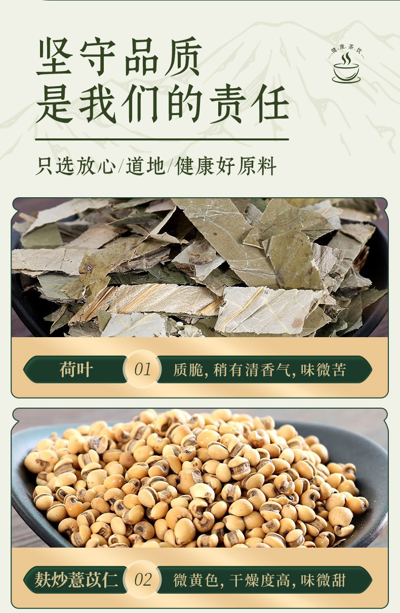 荷苡茶 荷叶麸炒薏苡仁炒山楂 康美中药饮片中药材组合泡水泡茶【央视频专家推荐】