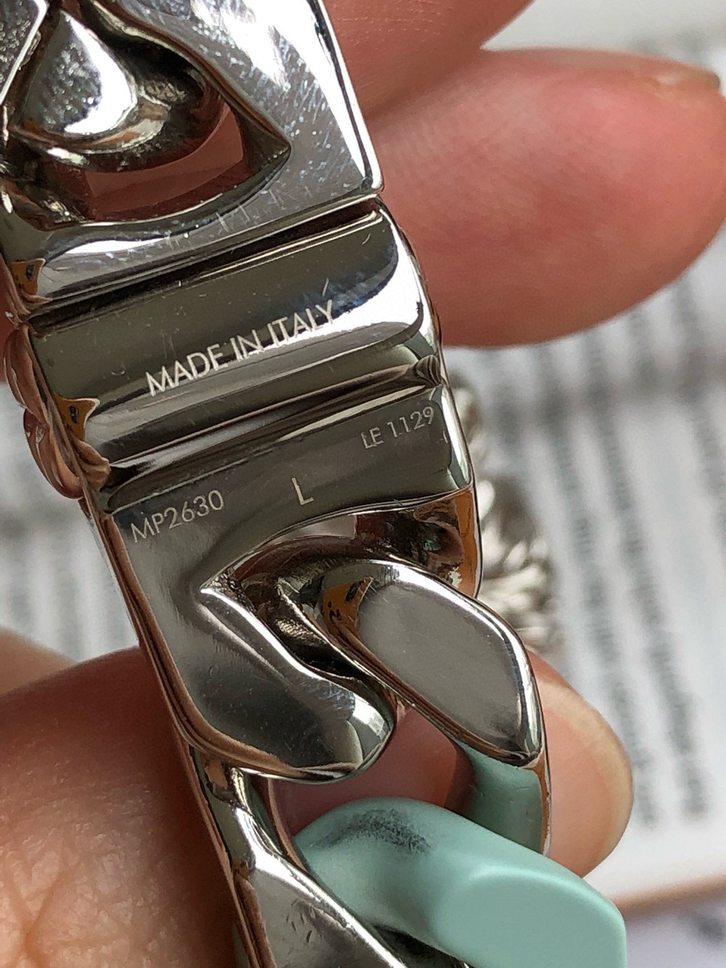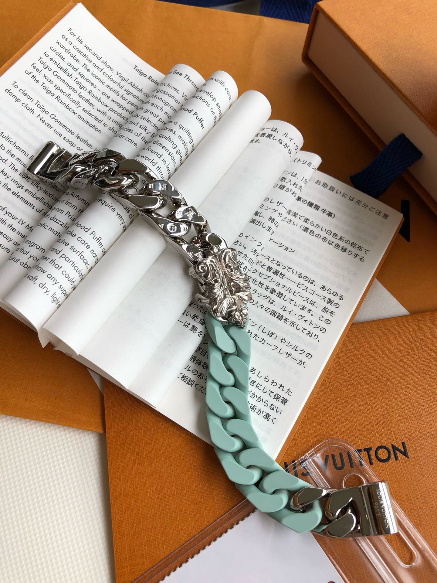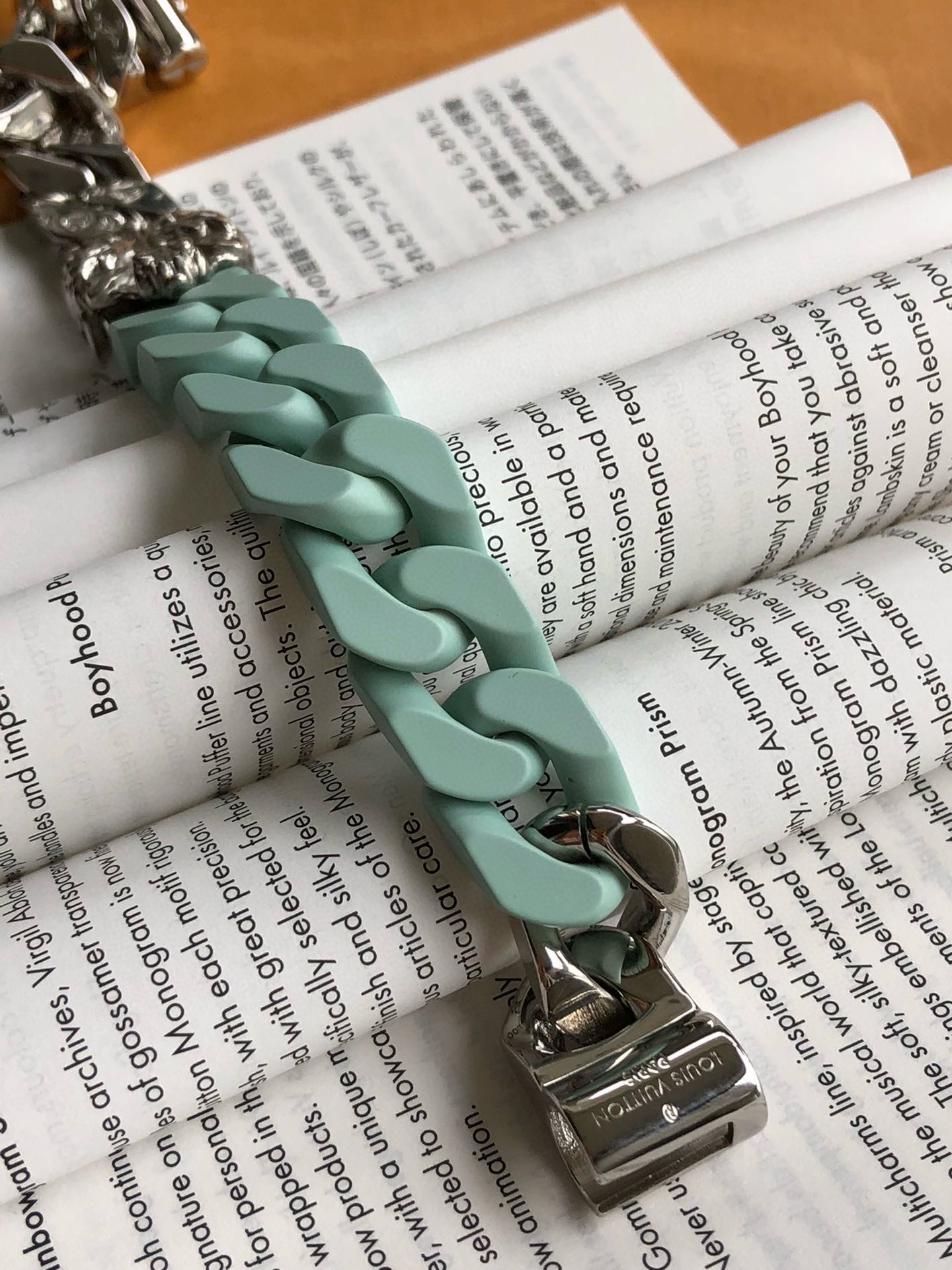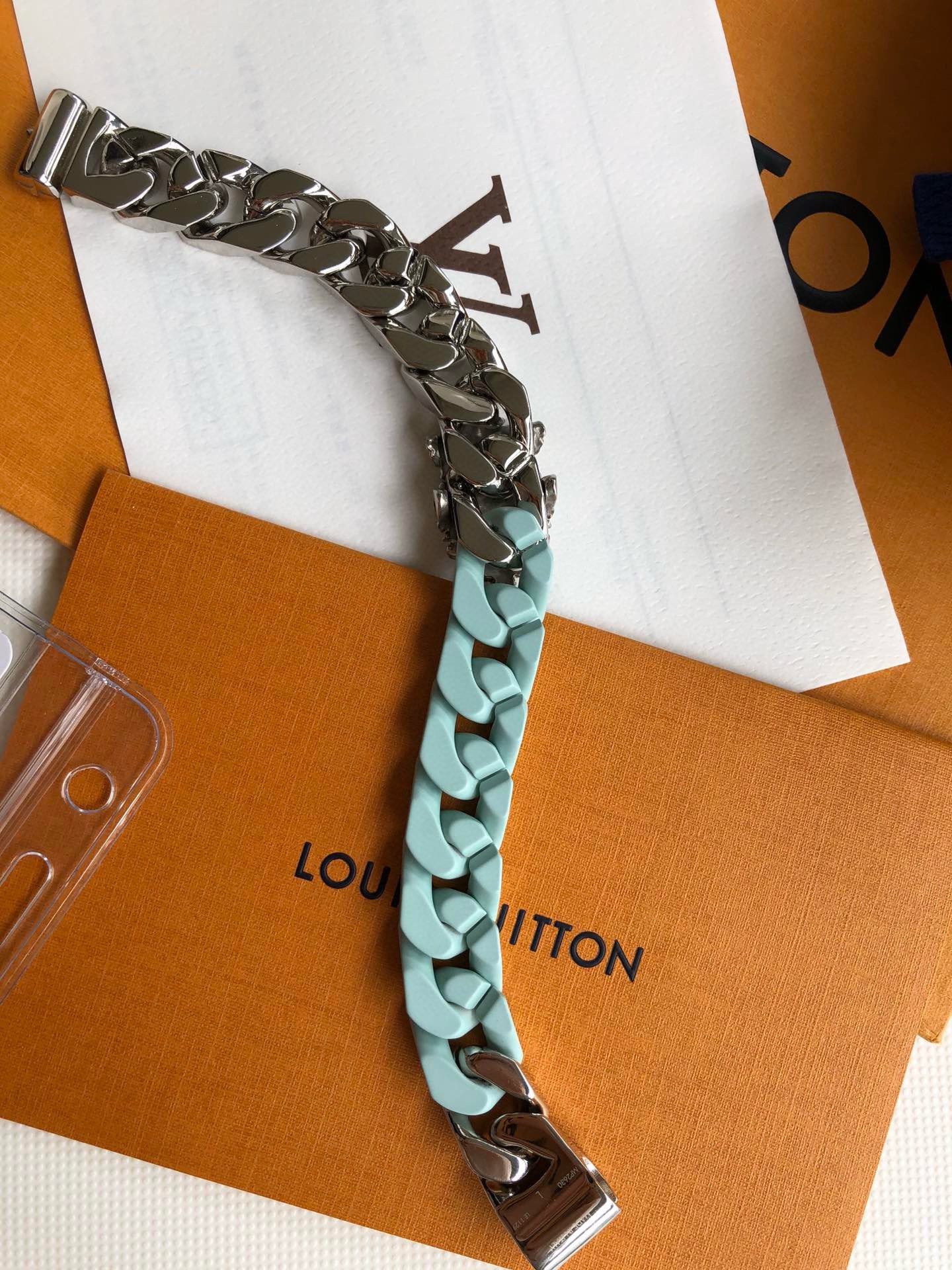 朱一龙同款SCULPTURE 薄荷绿手链!整个欧洲只有10多条!男士作为服饰搭配,轻松塑造率性的潮酷范。LV SCULPTURE 手链,编码:MP2630,官网同步在售¥11600人民币!LV Sculpture 项链重绎 2024 春夏系列设计,拼接 Monogram 铭纹链条与粉彩色调陶瓷元素,以宛若恢弘楼宇的结构致敬巴黎豪斯曼风格建筑。该系列另有同款手链可选。详细特征:金属件-镂刻 Monogram 图案-镂刻注册商标 R 标识-“路易威登”英文字样!