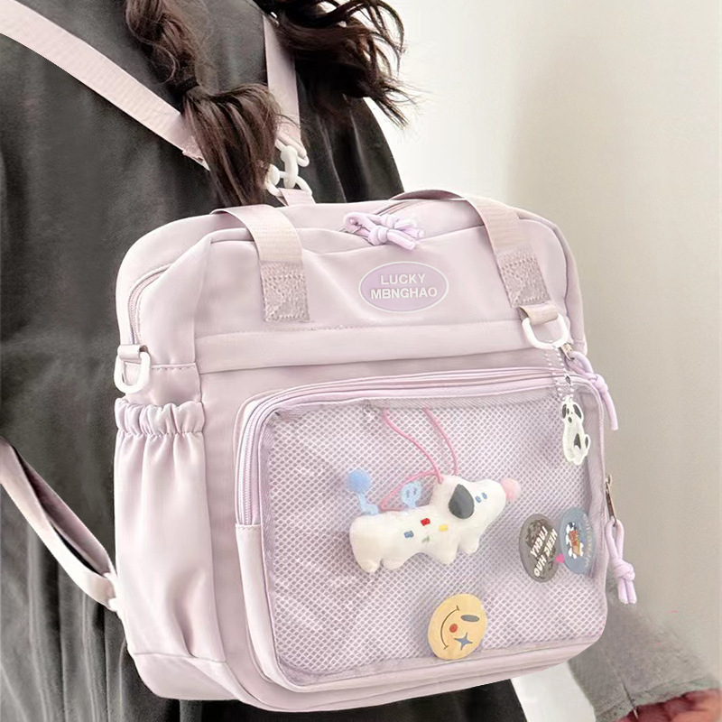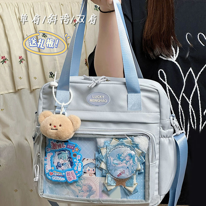 【送扎板❗️学院风百搭大容量包包】四种背法,升级防泼水面料,简约邮差包女透明吧唧单肩包斜挎娃包痛包书包读书学生开学季