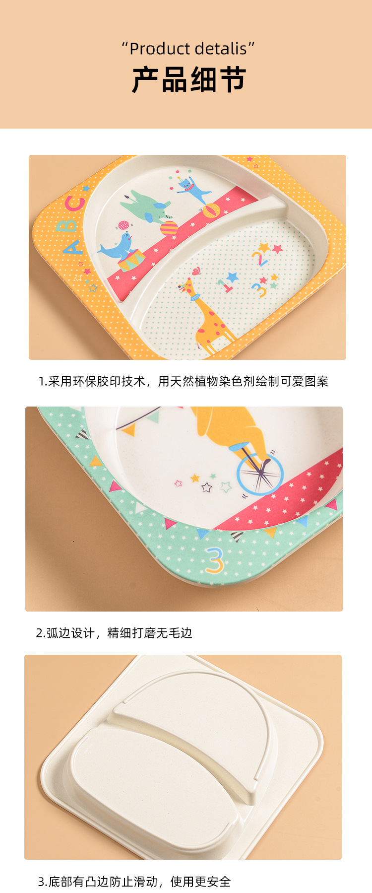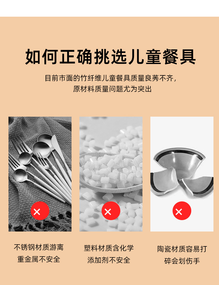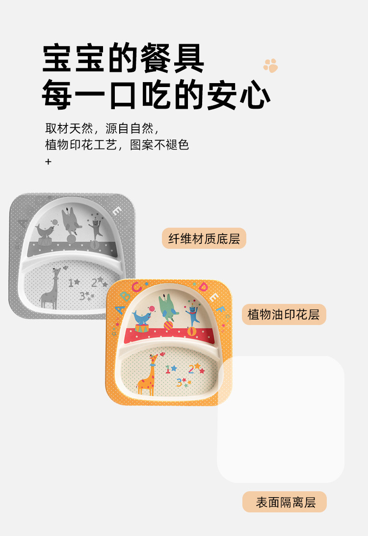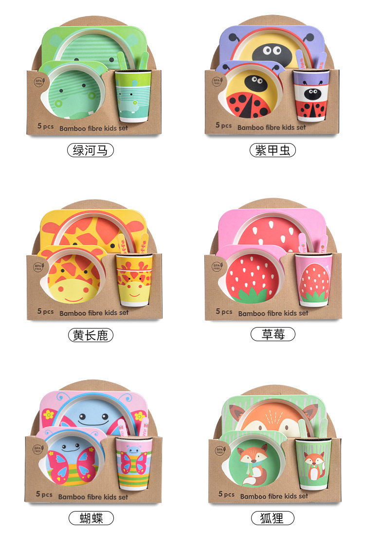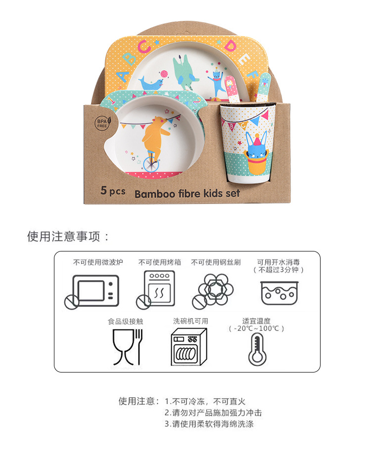【儿童餐盘】竹纤维儿童餐具套装 创意卡通碗分格餐盘勺叉杯子五件套