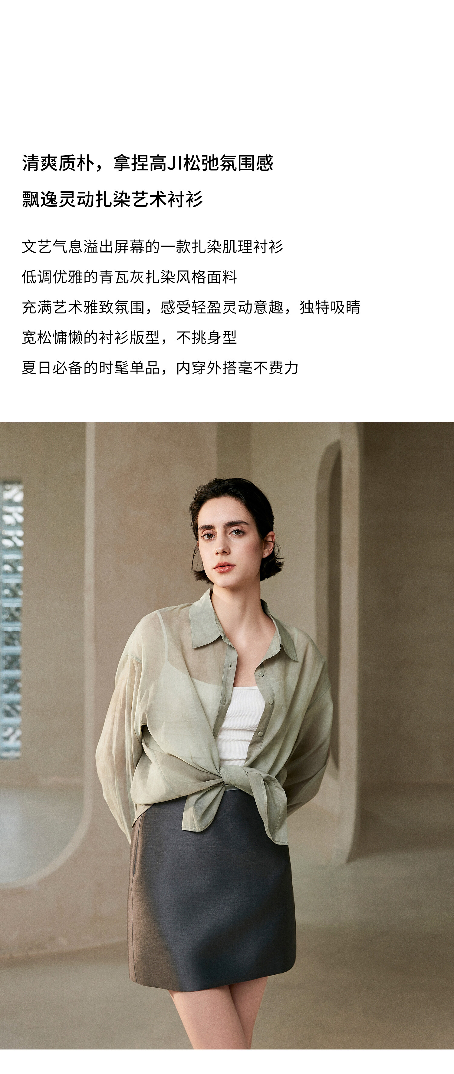 棉仓362604016-初棉宽松薄款扎染长袖衬衫