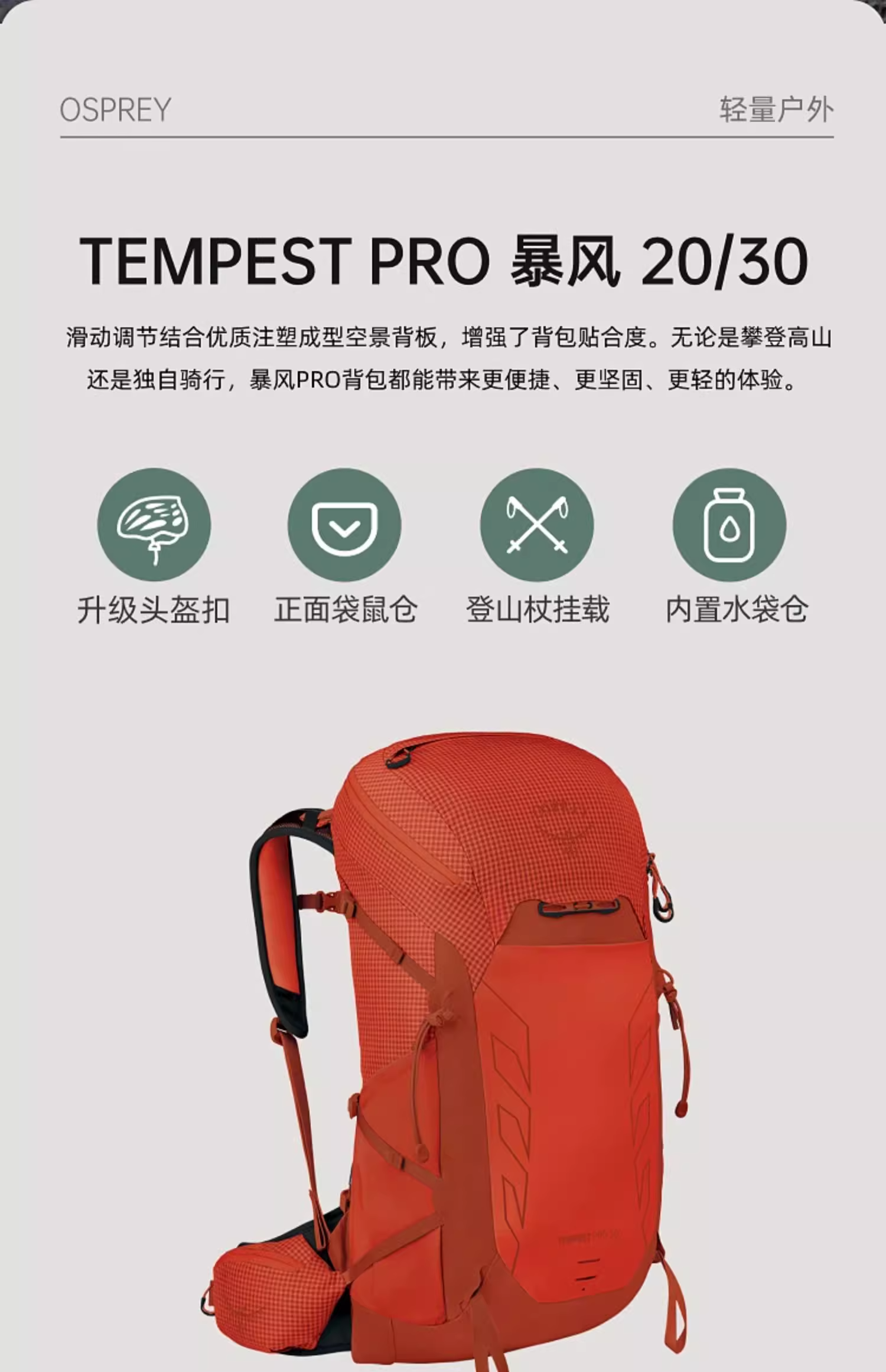 OSPREY tempest Pro小鹰暴风PRO20升30升专业户外徒步包防水登山包女