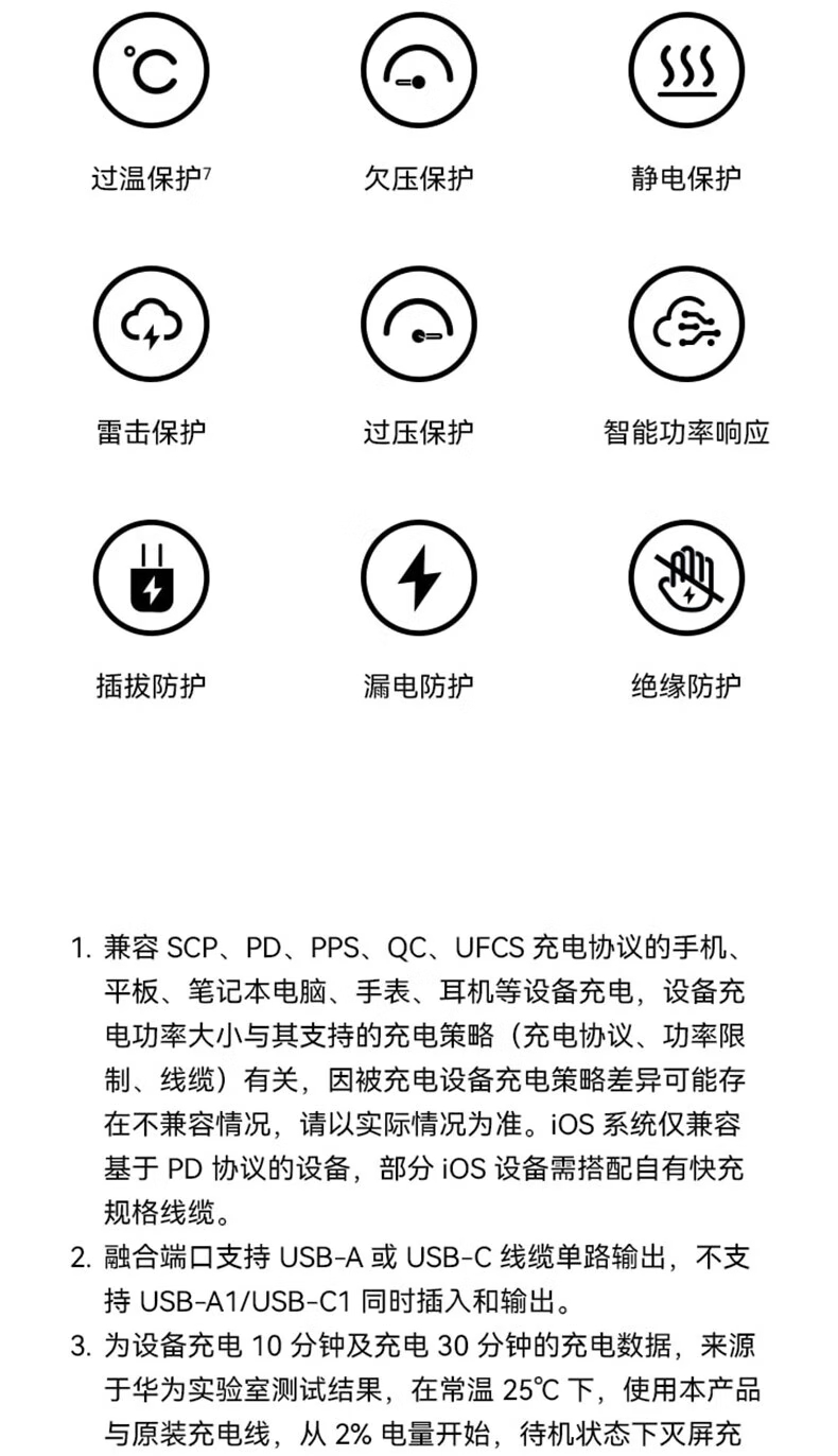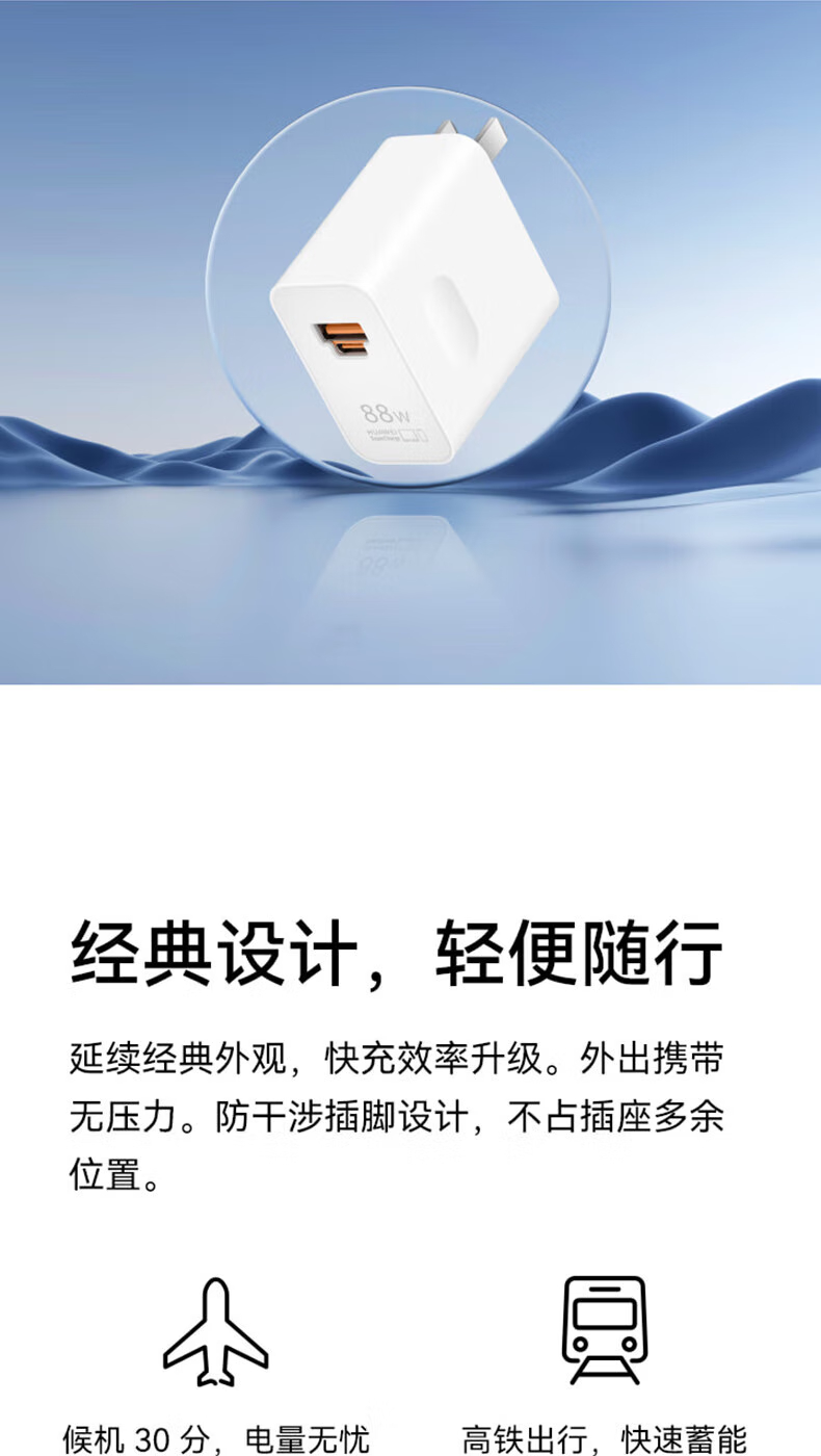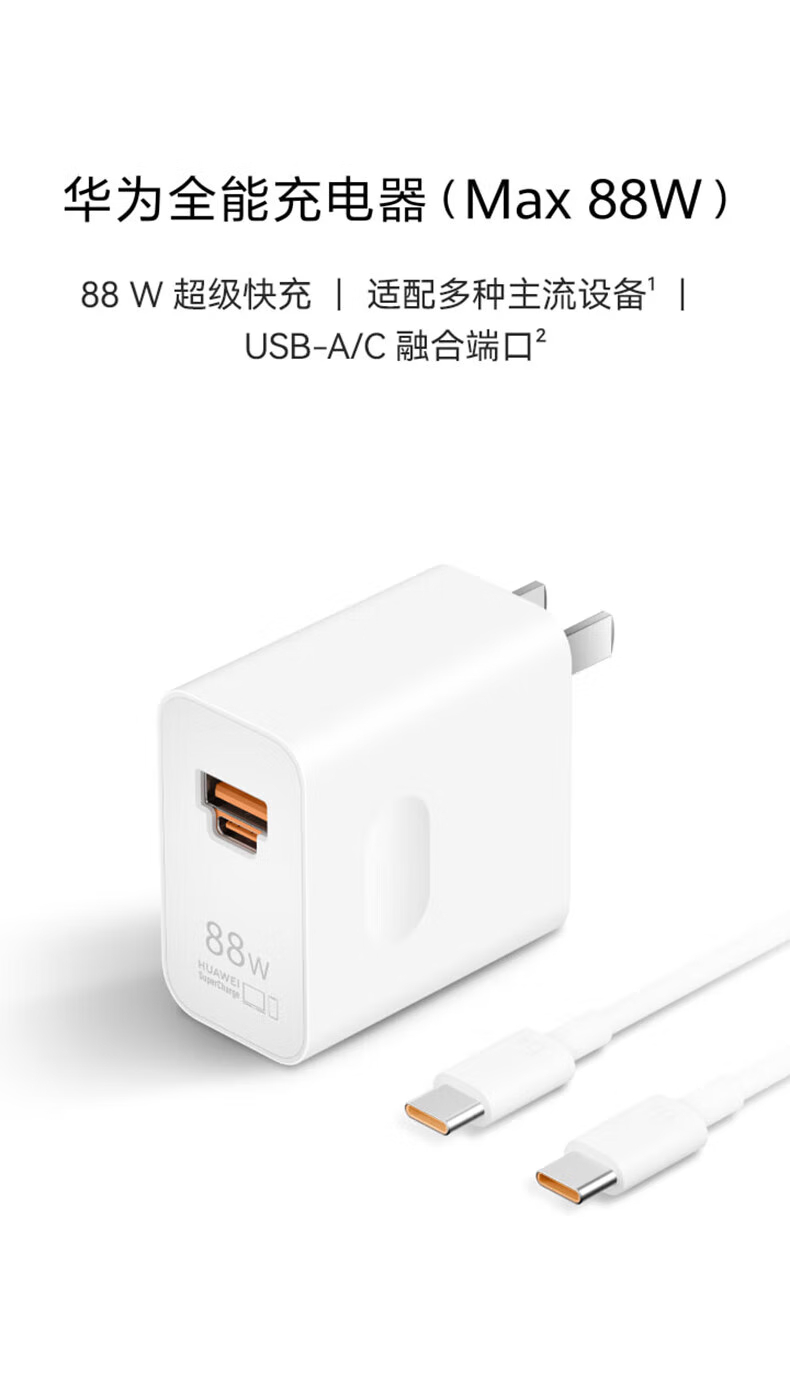 华为(HUAWEI)全能充88W 超级快充 适配多种主流设备 USB-A/C融合端口