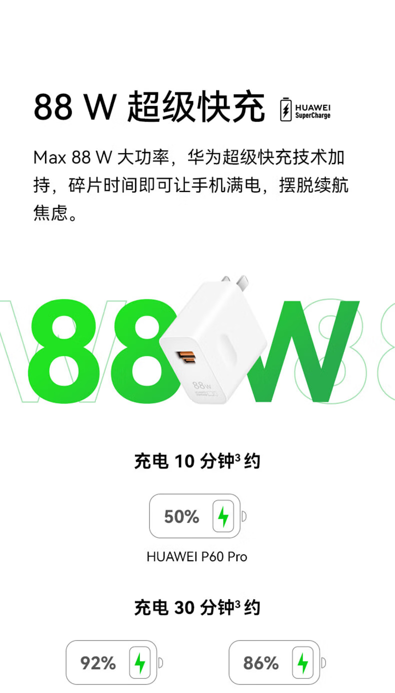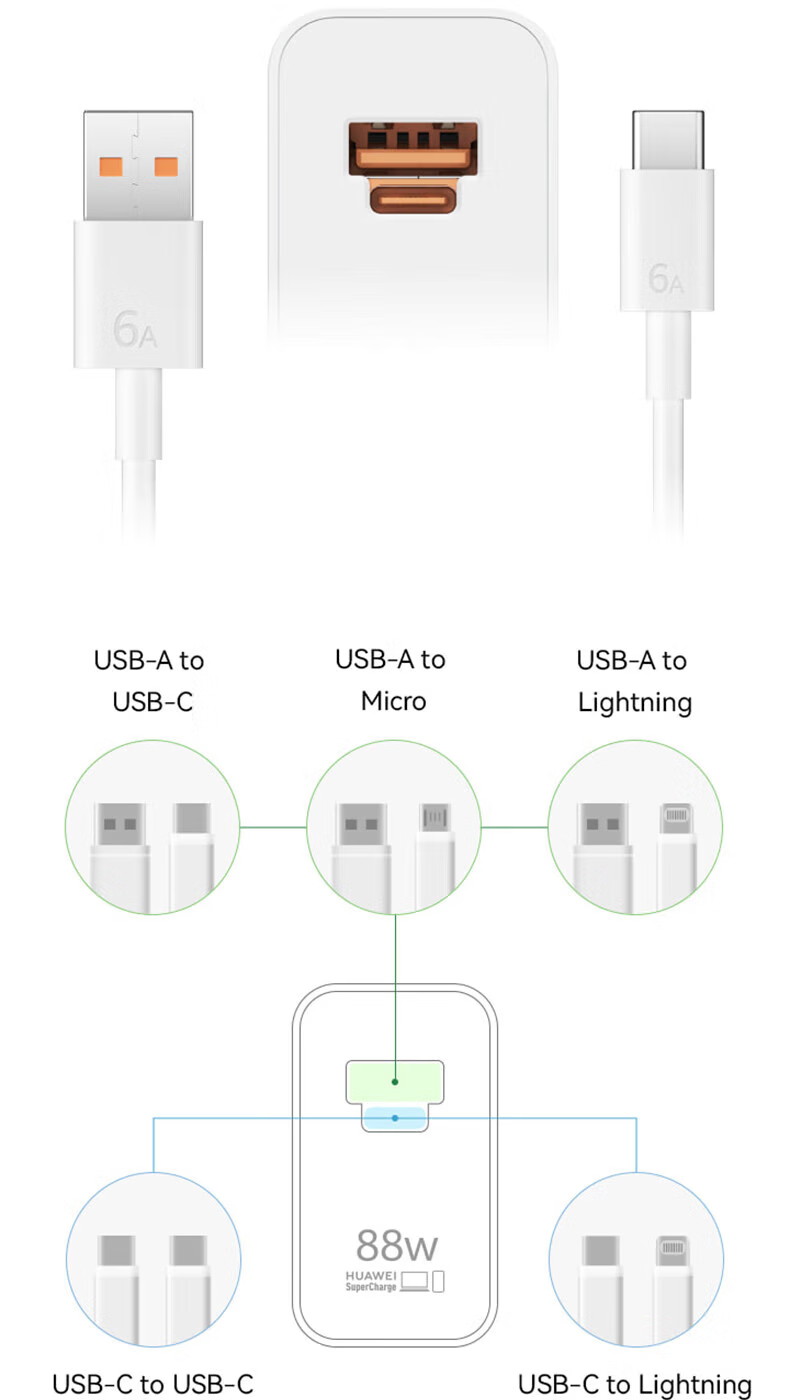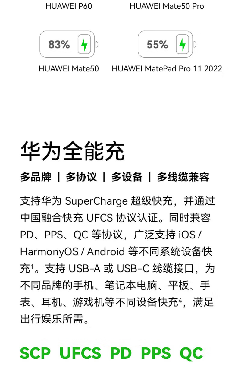 华为(HUAWEI)全能充88W 超级快充 适配多种主流设备 USB-A/C融合端口