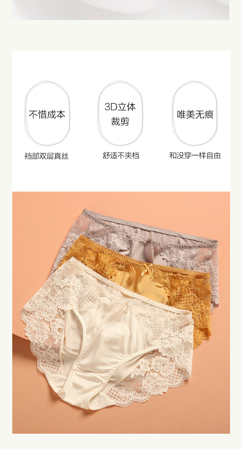 【3条装】金三塔真丝内裤女蕾丝三角裤 100%桑蚕丝舒适透气中腰内裤 (私密物品不支持退换) NZF9C217
