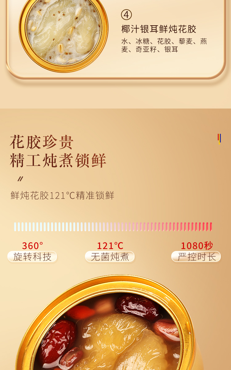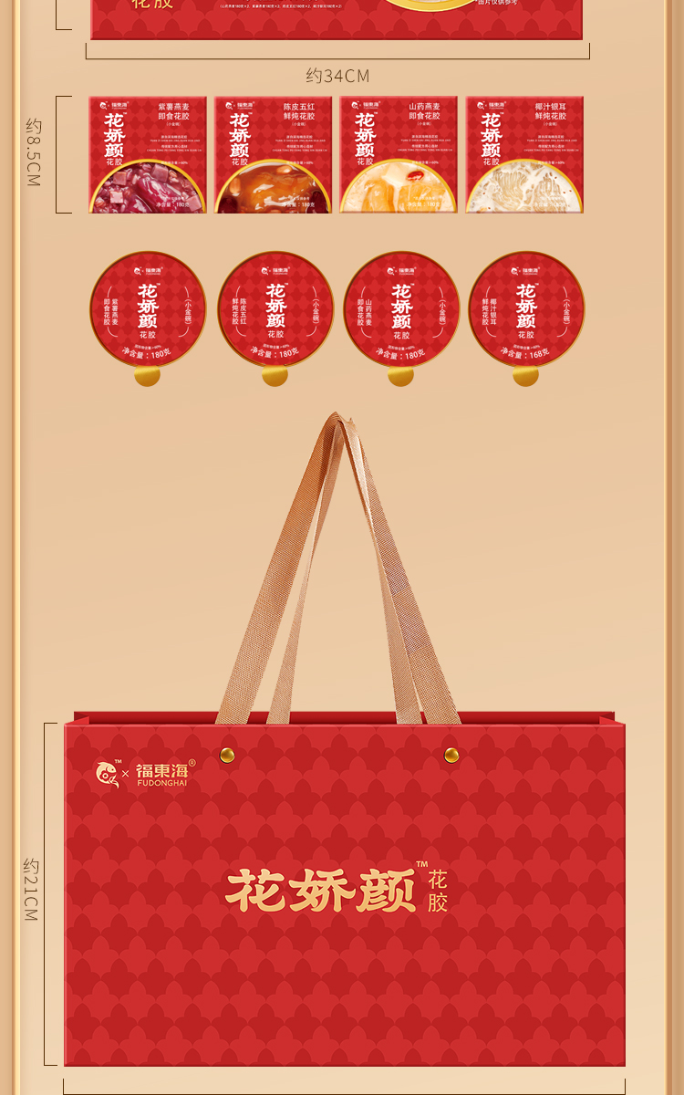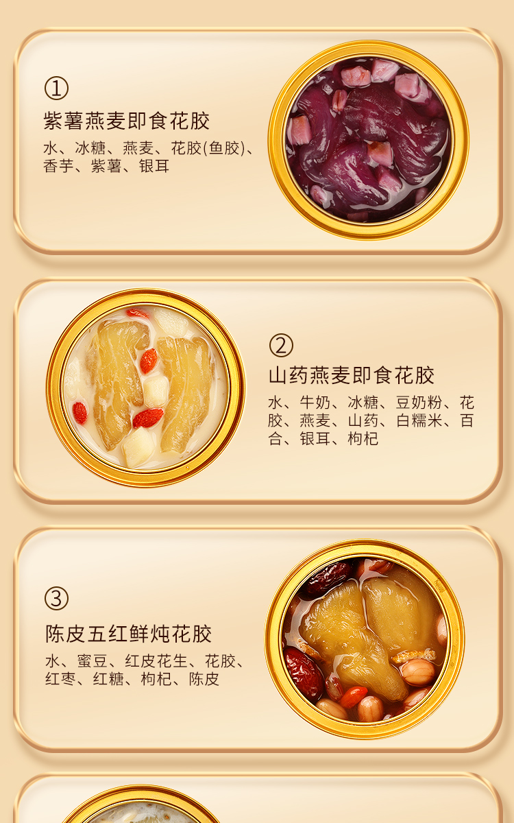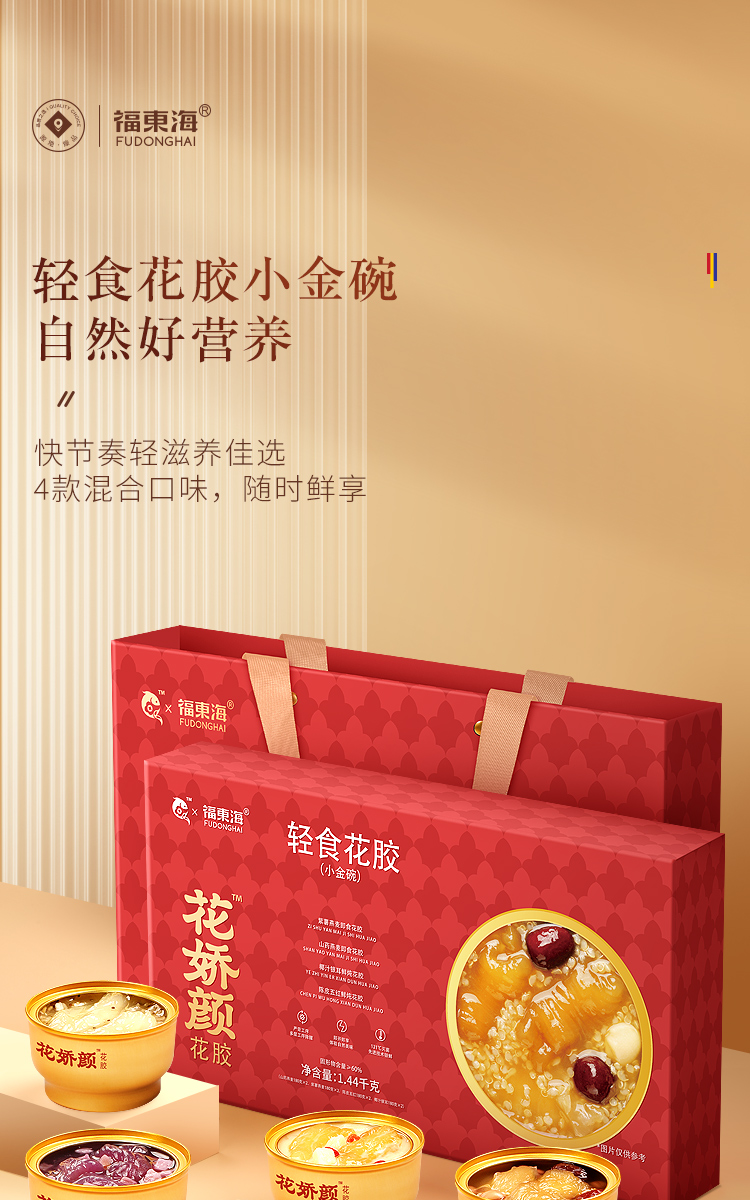 福东海 即食花胶粥1440克(180克*8碗)轻食早餐胶原蛋白鱼胶 4口味礼盒装 送爱人滋补品代餐血孕妇营养品