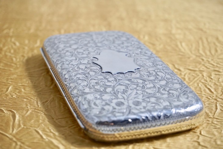 1900年代英国古董纯银满雕刻内流金雪茄盒o frantiques英国古董