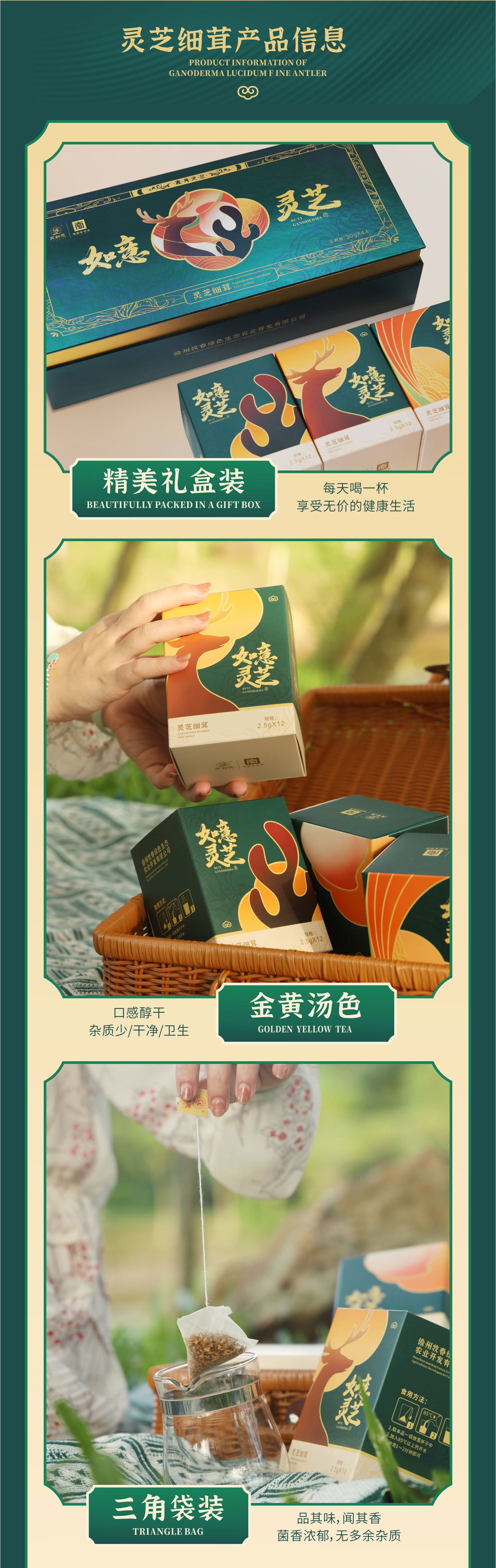 品质新升级-海南老字号灵如意 鹿角菌草灵芝 灵芝细茸精品礼盒装2.5g*12*4小盒/盒 送礼袋
