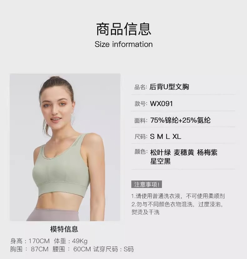 跃牌(呗咪纷纷系列)大码瑜伽内衣后扣易穿脱V字美背运动文胸固定罩杯WX091