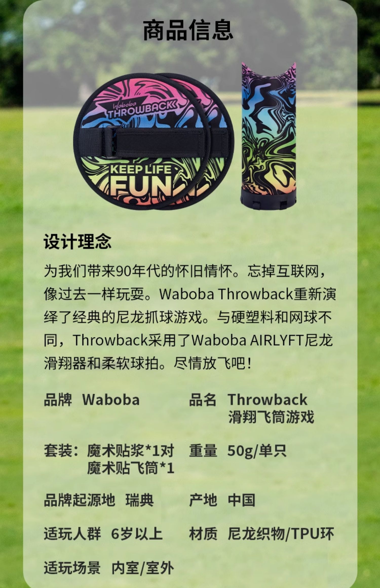 Waboba Throwback捕捉者滑翔飞筒游戏户外运动滑翔机飞行器