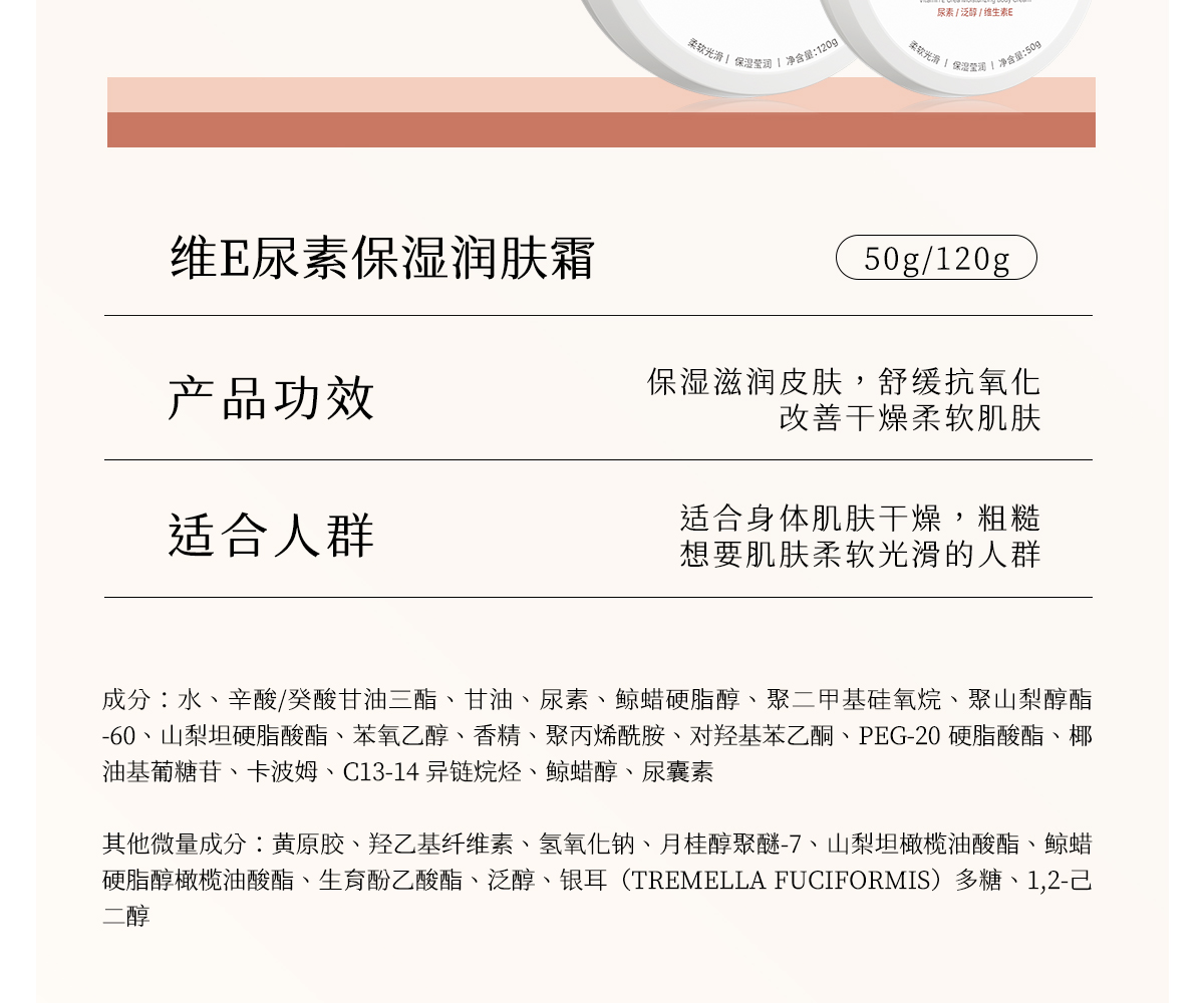 【身体霜】维E尿素保湿润肤霜 容量 50g/120g 保湿修护身体乳身体霜