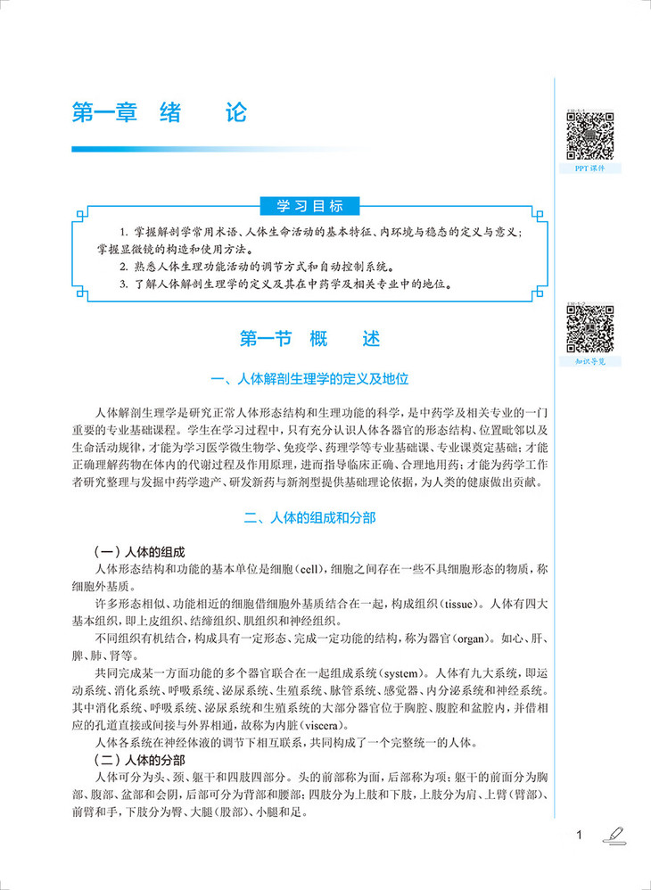 一、 人体解剖生理学的定义及地位 /1