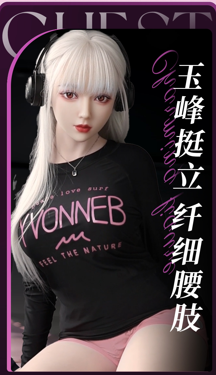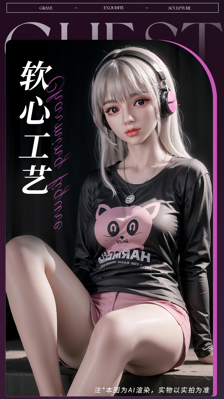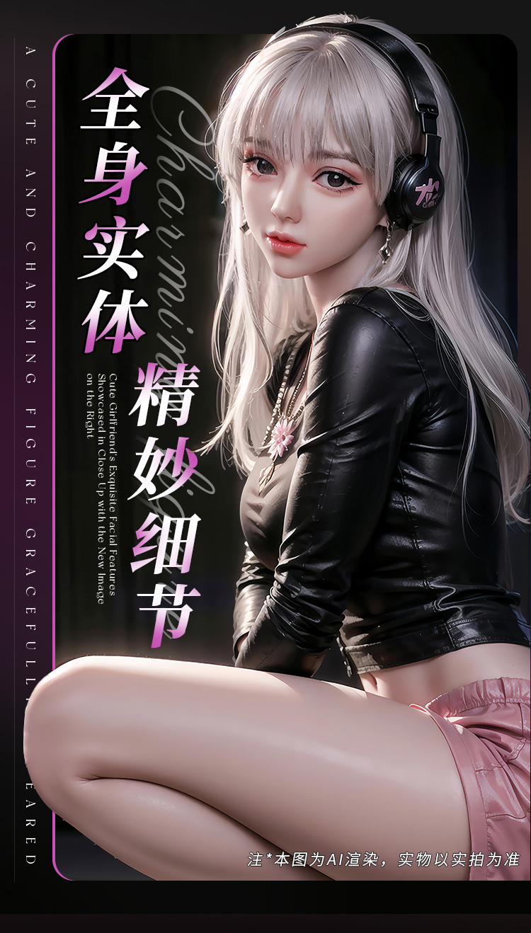 硅胶头实体娃娃黑色衬衫白毛娃娃-艺可