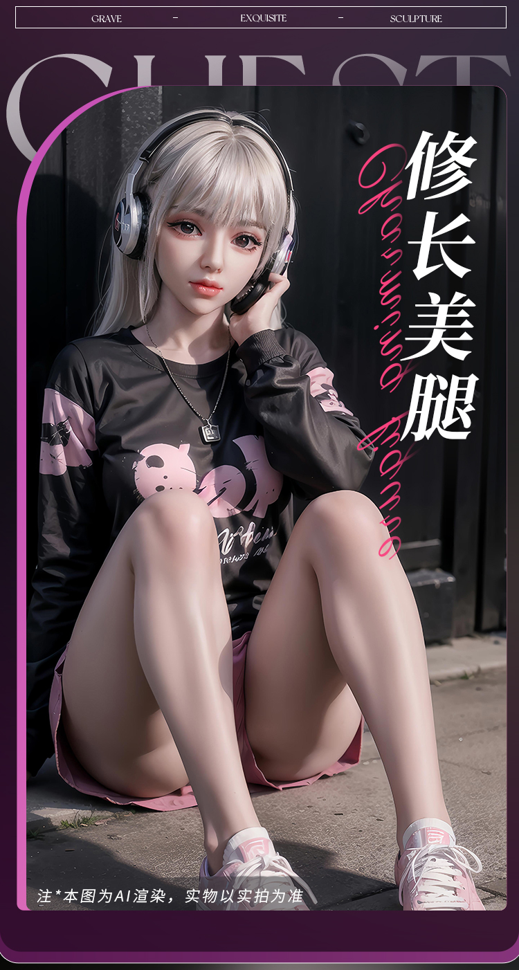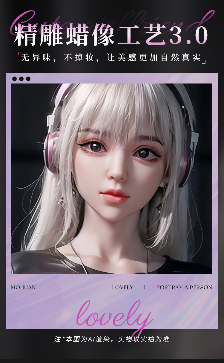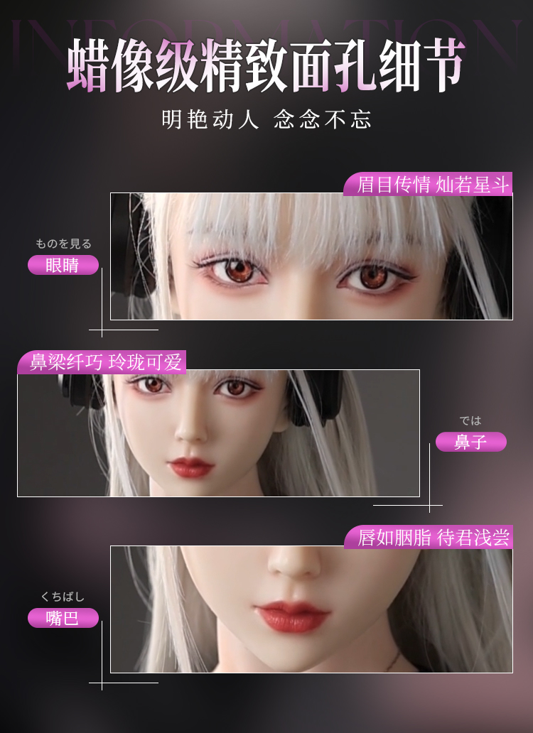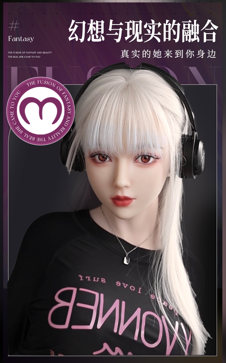 硅胶头实体娃娃黑色衬衫白毛娃娃-艺可