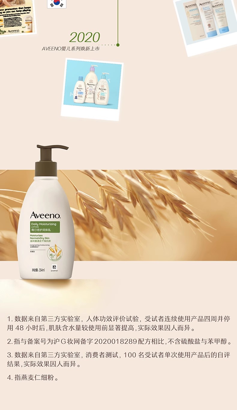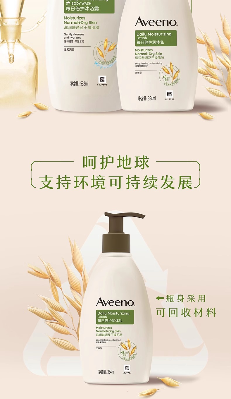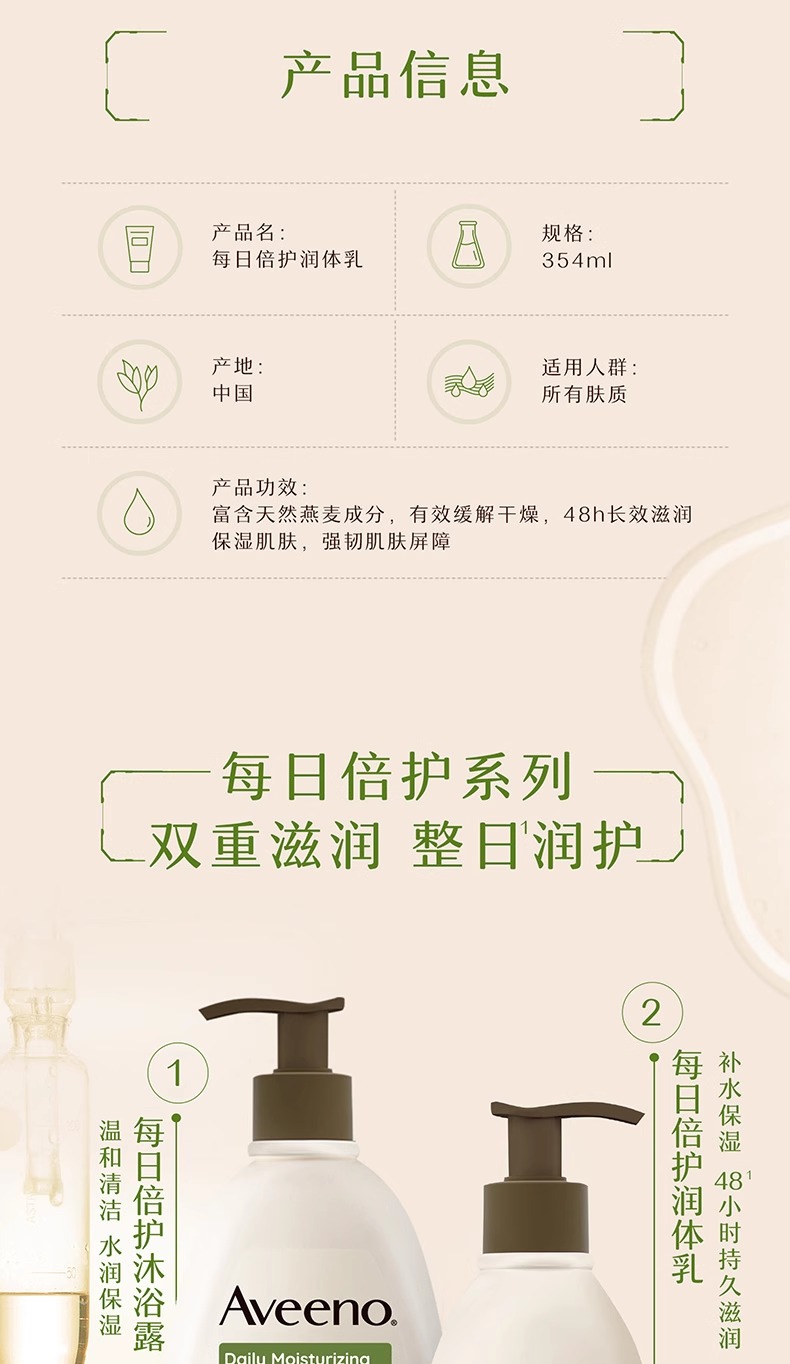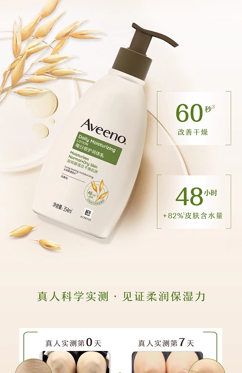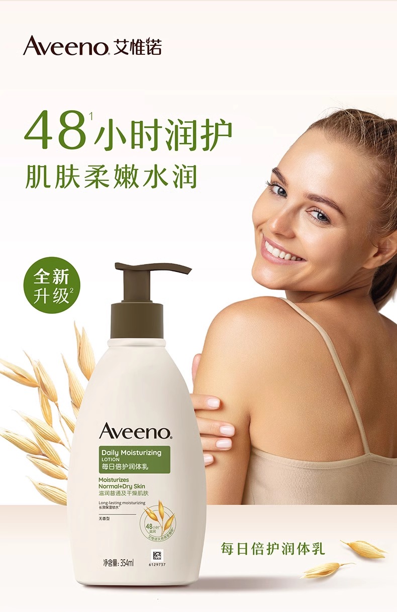 【1:1送水凝保湿霜10g】Aveeno艾惟诺成人每日倍护润体乳354ml(无香型)