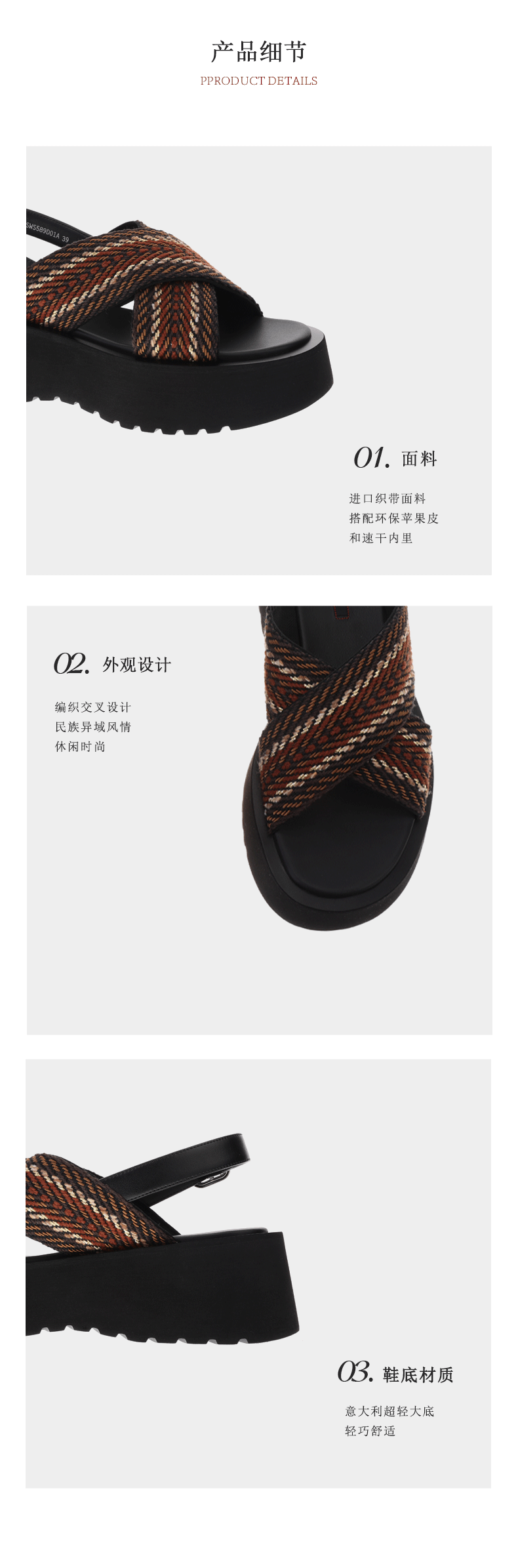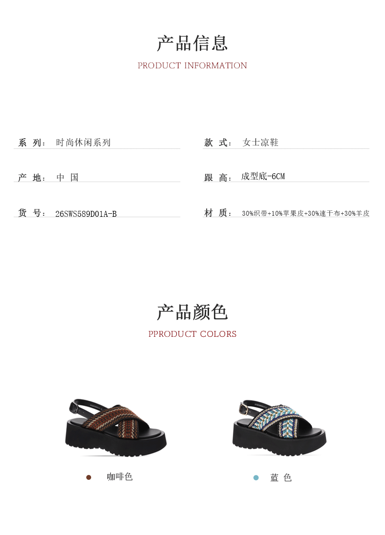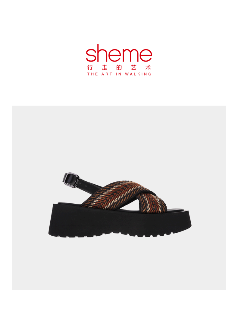 sheme进口织带搭配速干布内里休闲时尚女士厚底凉鞋可定制