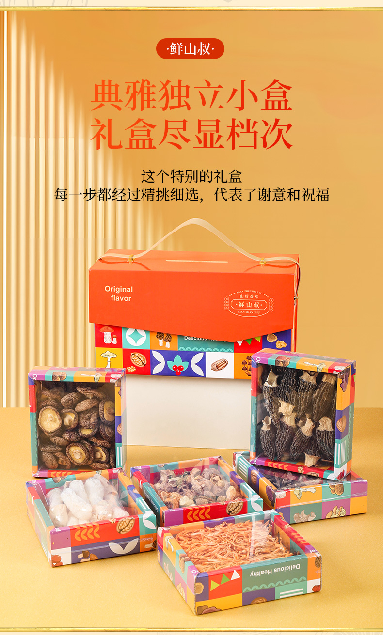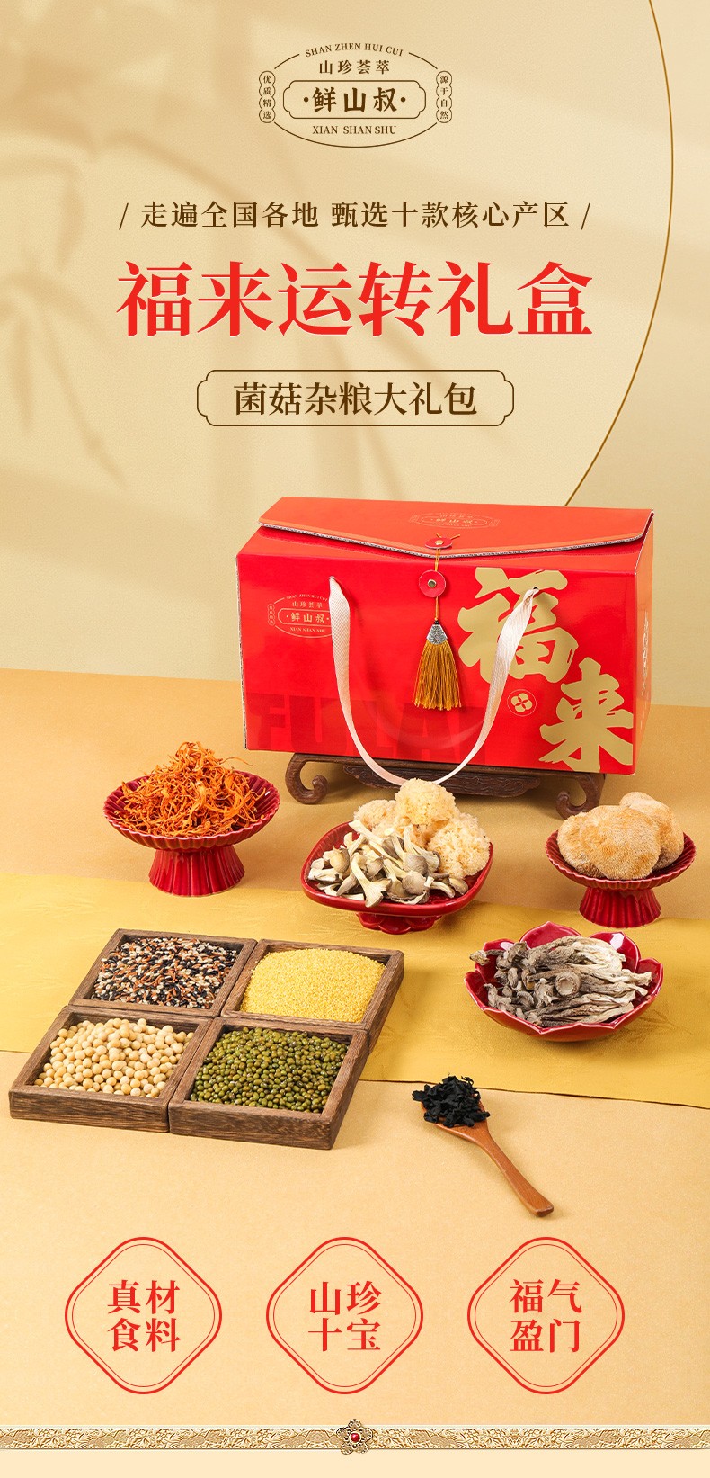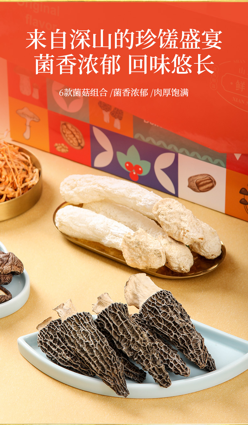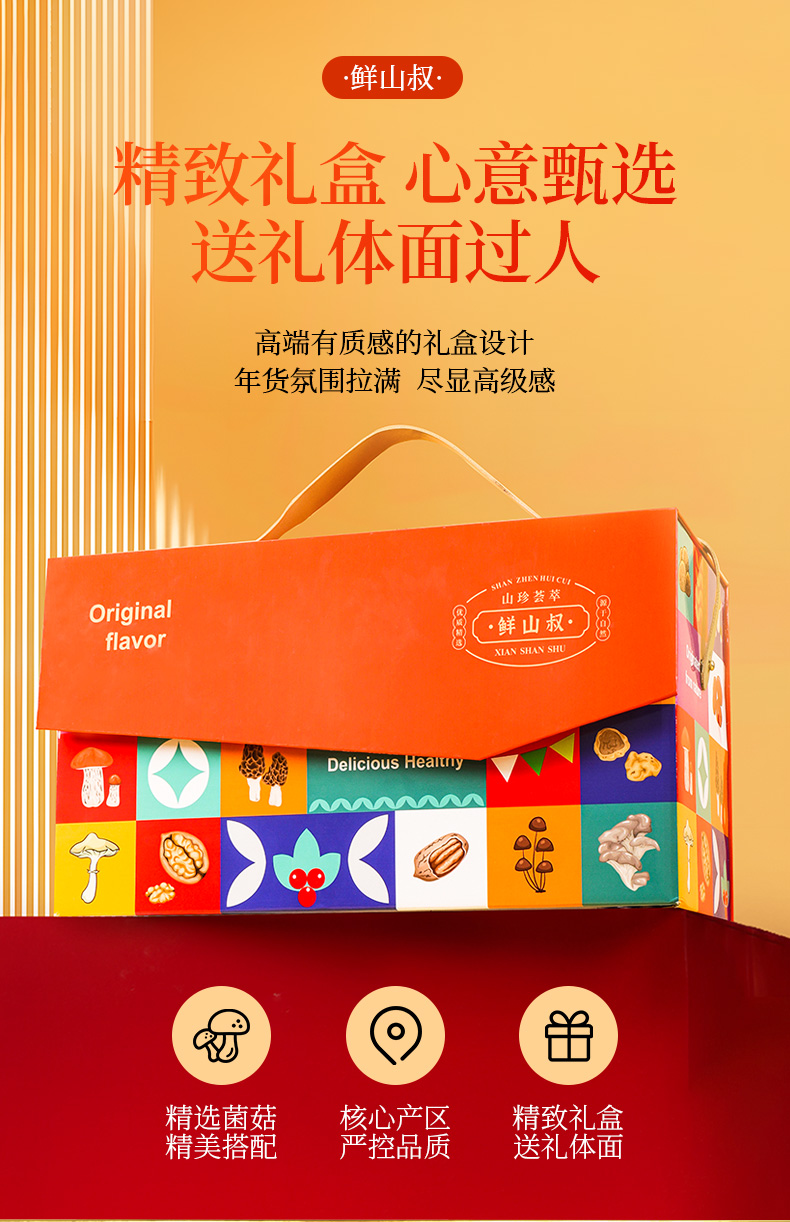 鲜山叔 精品菌菇礼盒羊肚菌鹿茸菇猴头菇干货杂粮礼盒春节送礼必备