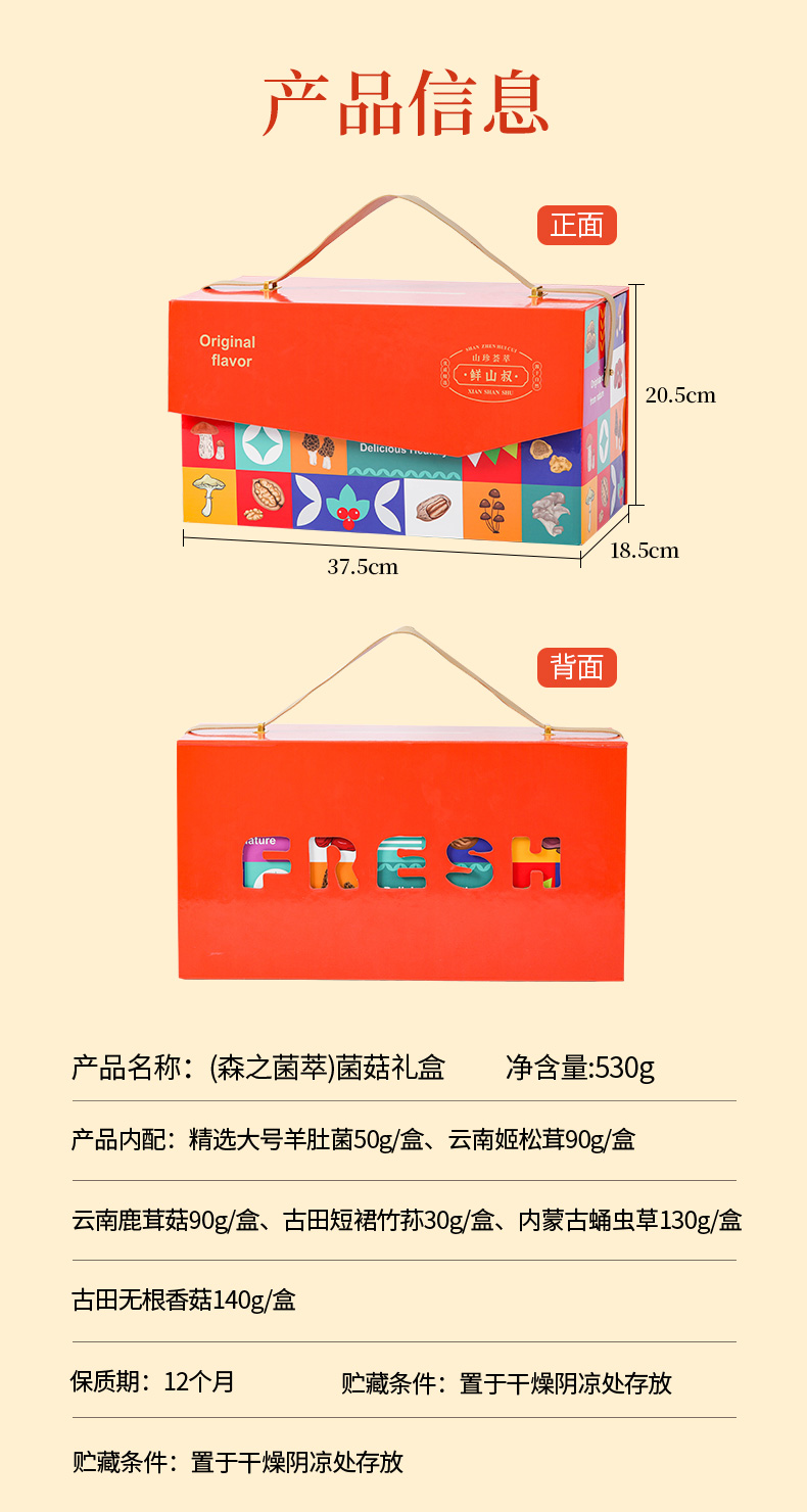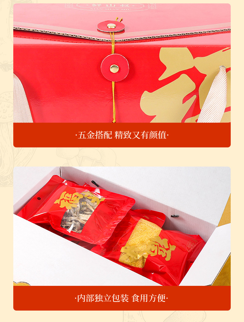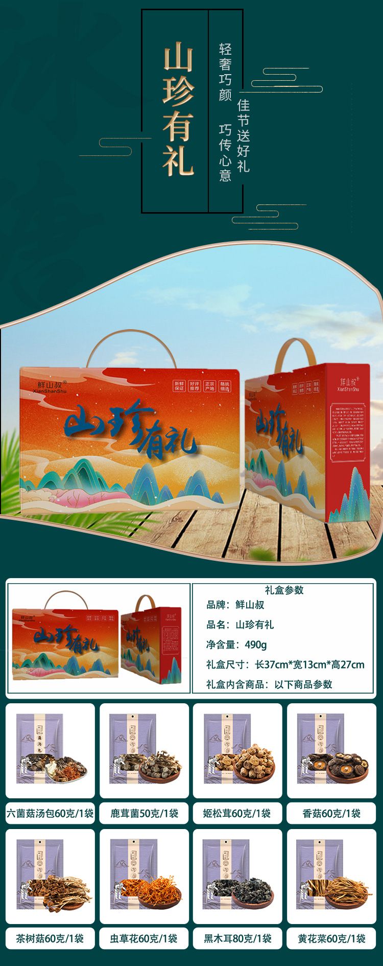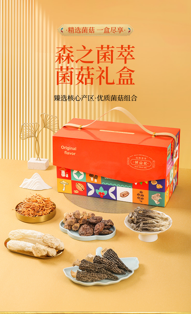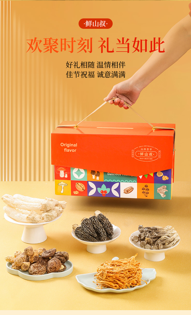 鲜山叔 精品菌菇礼盒羊肚菌鹿茸菇猴头菇干货杂粮礼盒春节送礼必备