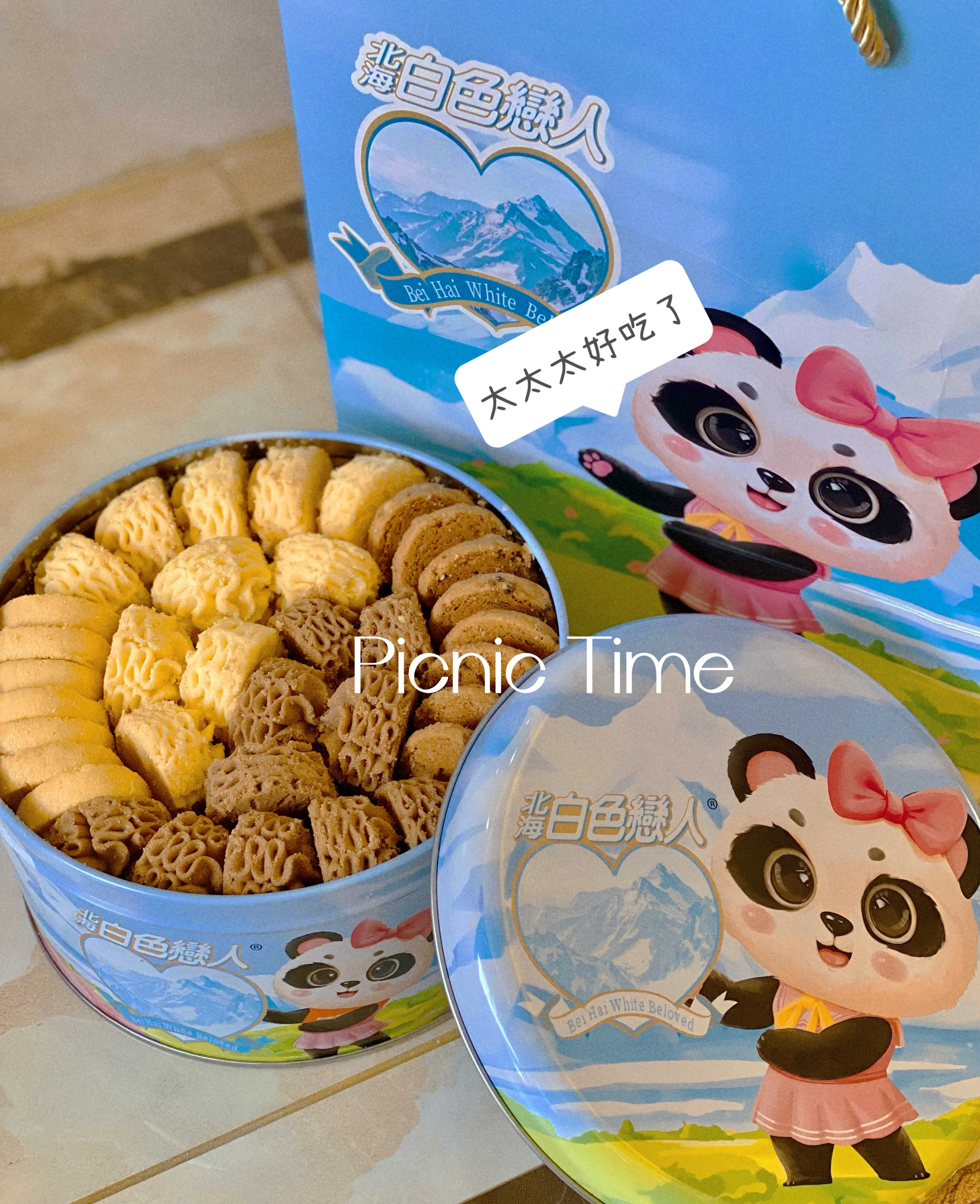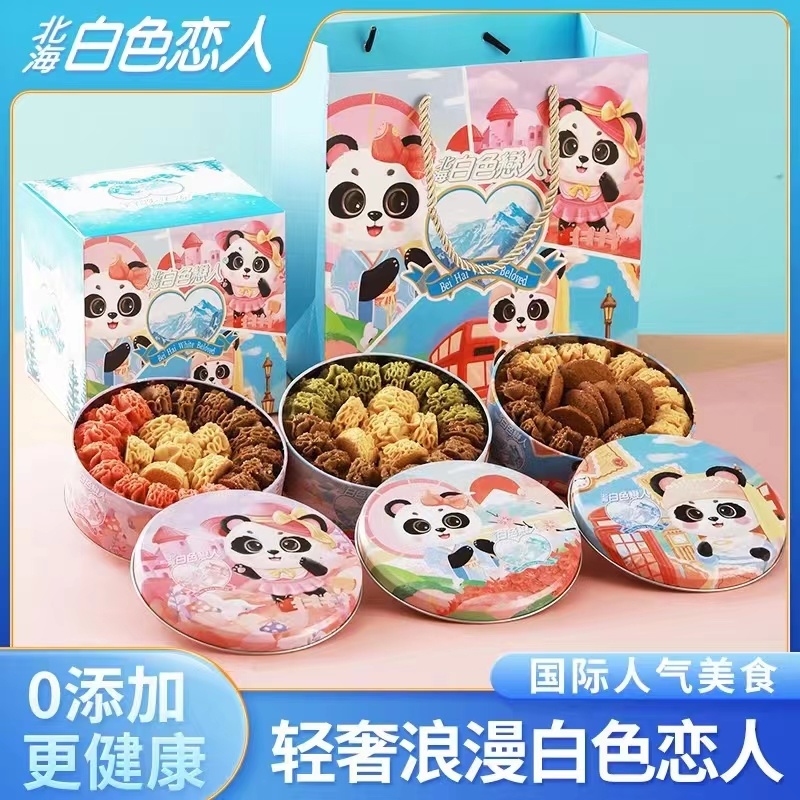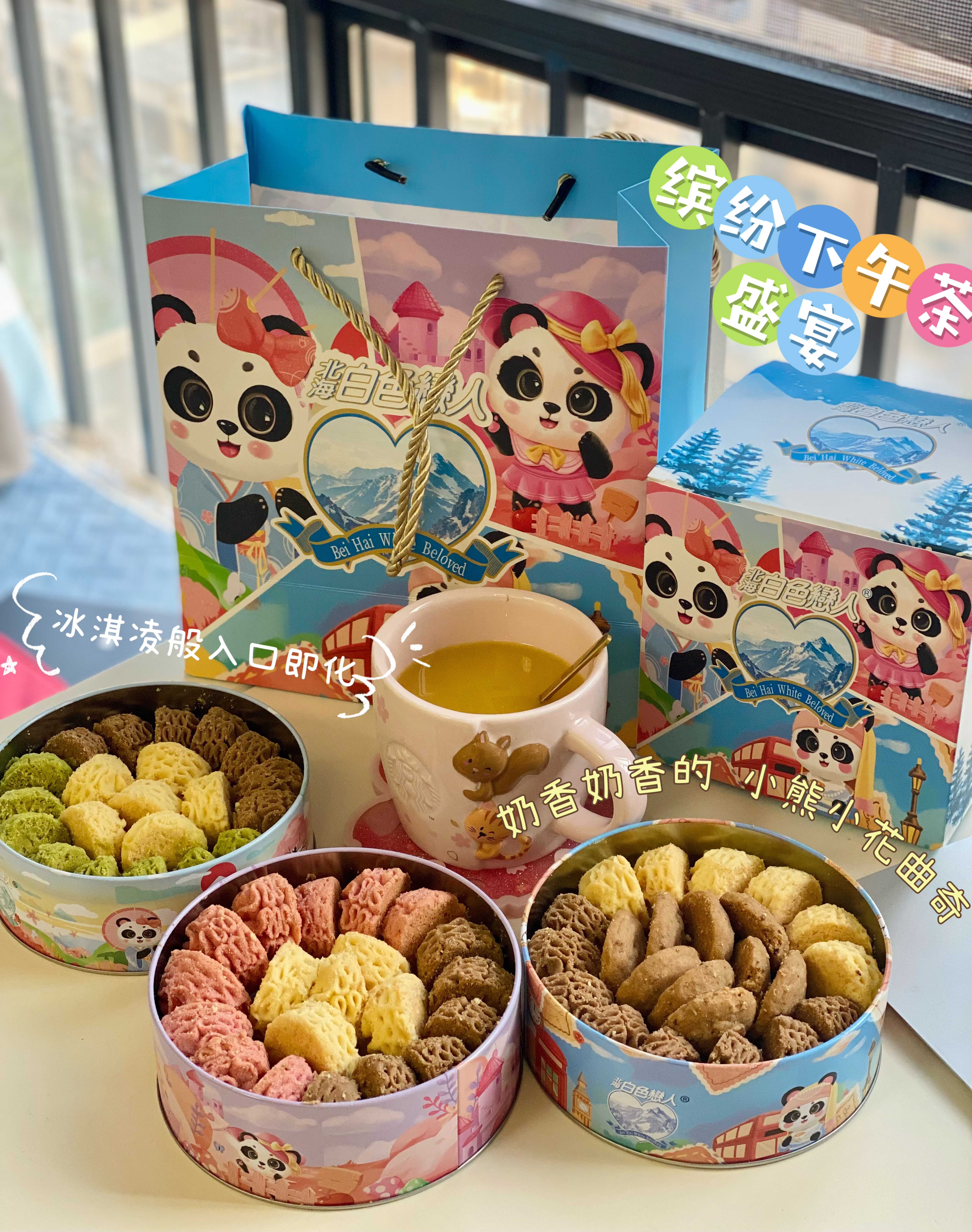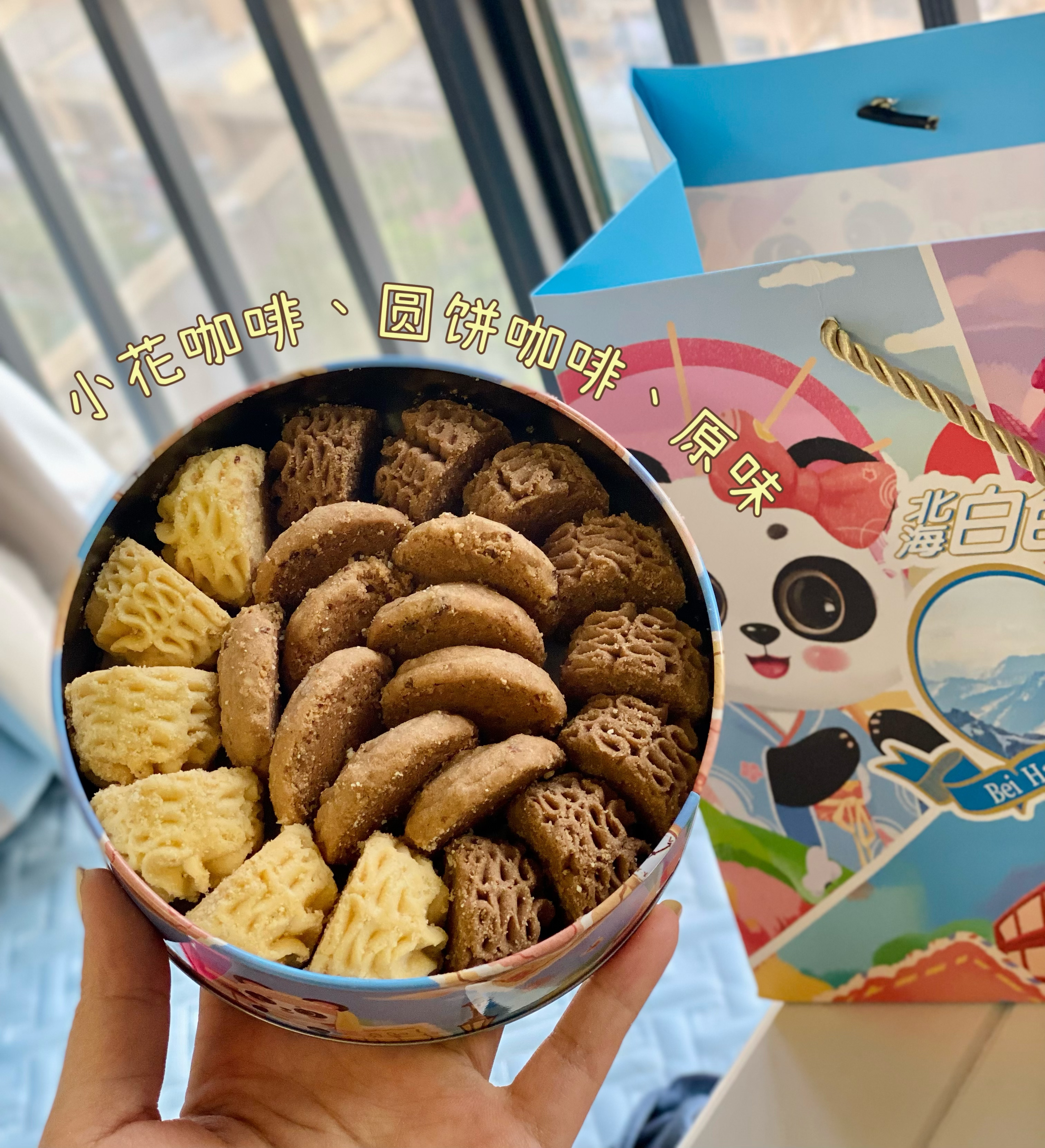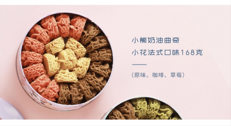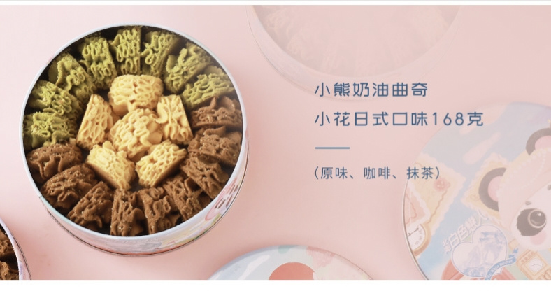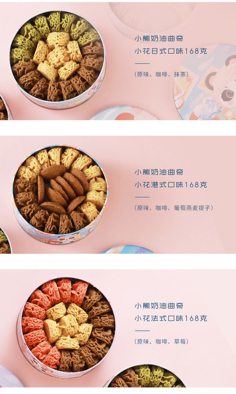 北海白色恋人小熊黄油小花曲奇饼干168g*3礼盒装原味抹茶草莓咖啡多种口味