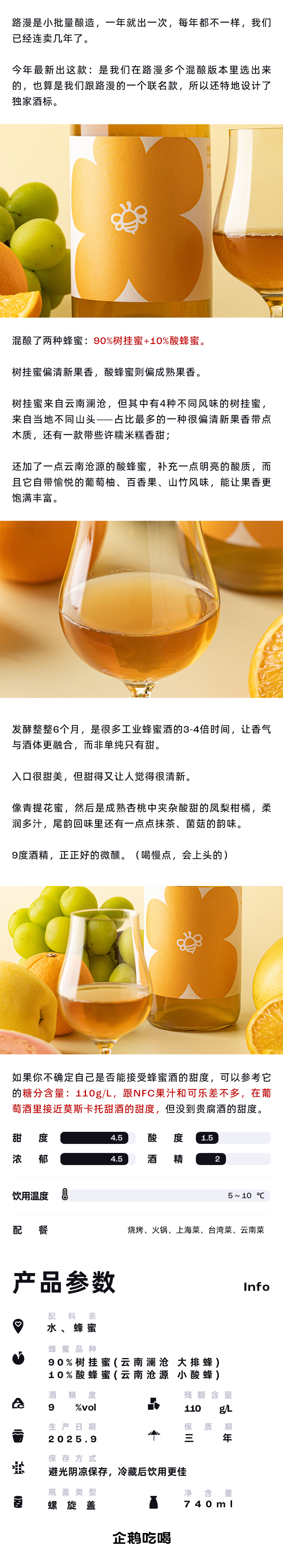 企鹅市集|路漫蜂蜜酒 企鹅独家定制版 云南土蜂蜜酿造 2种土蜂蜜混酿 甜而不腻
