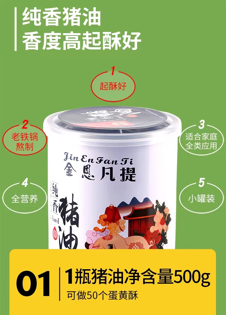 醇香猪油,膏脂白皙软化飘雪烘焙伴侣 500克