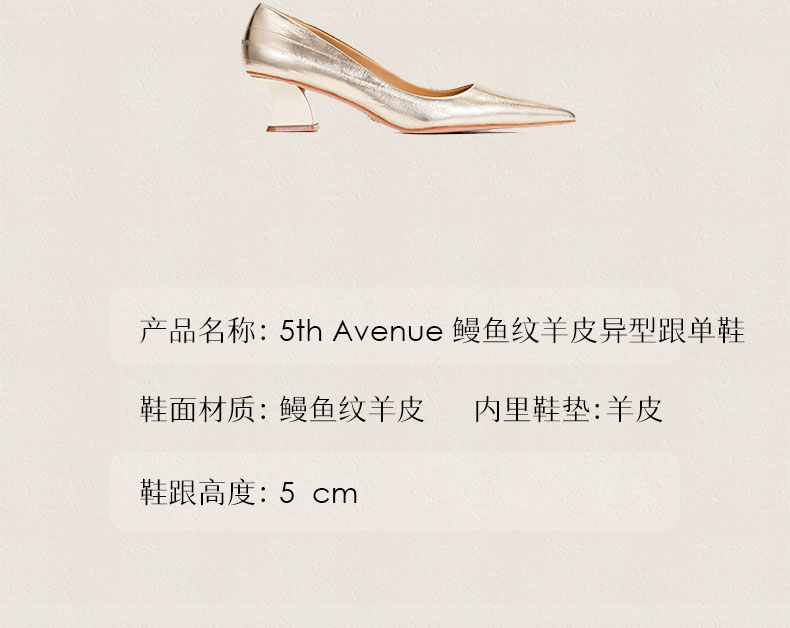 heelz设计师手工鞋履 |5th Avenue 鳗鱼纹羊皮异型跟单鞋 5公分