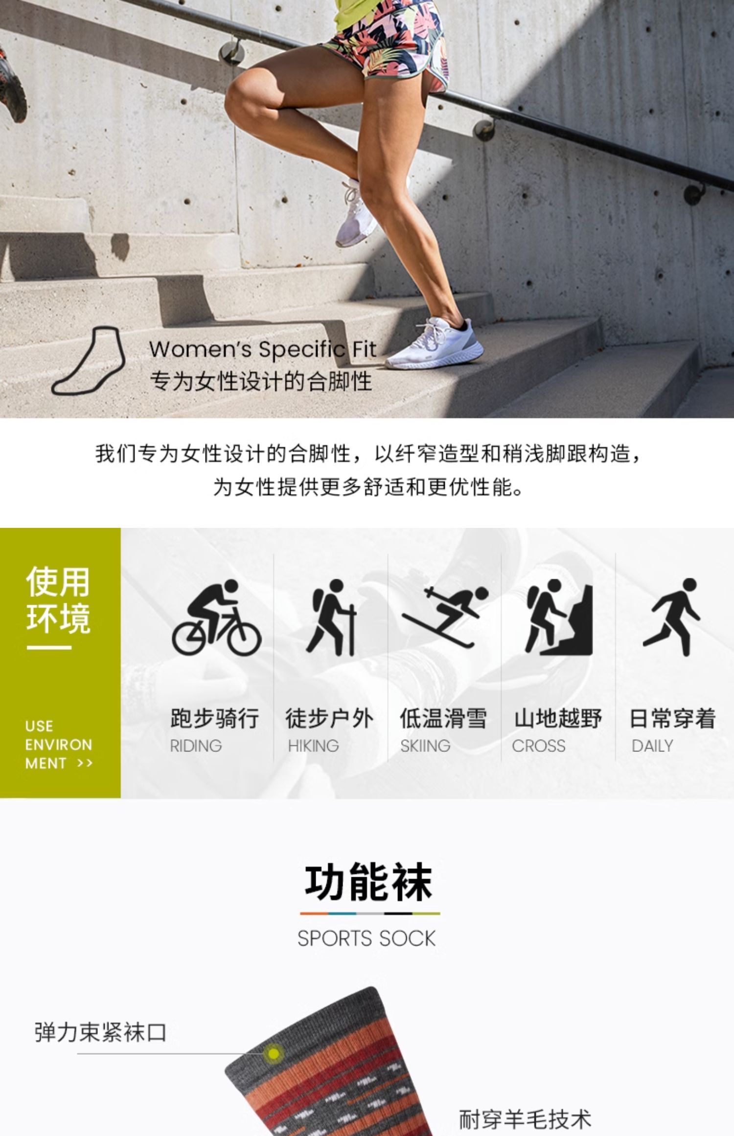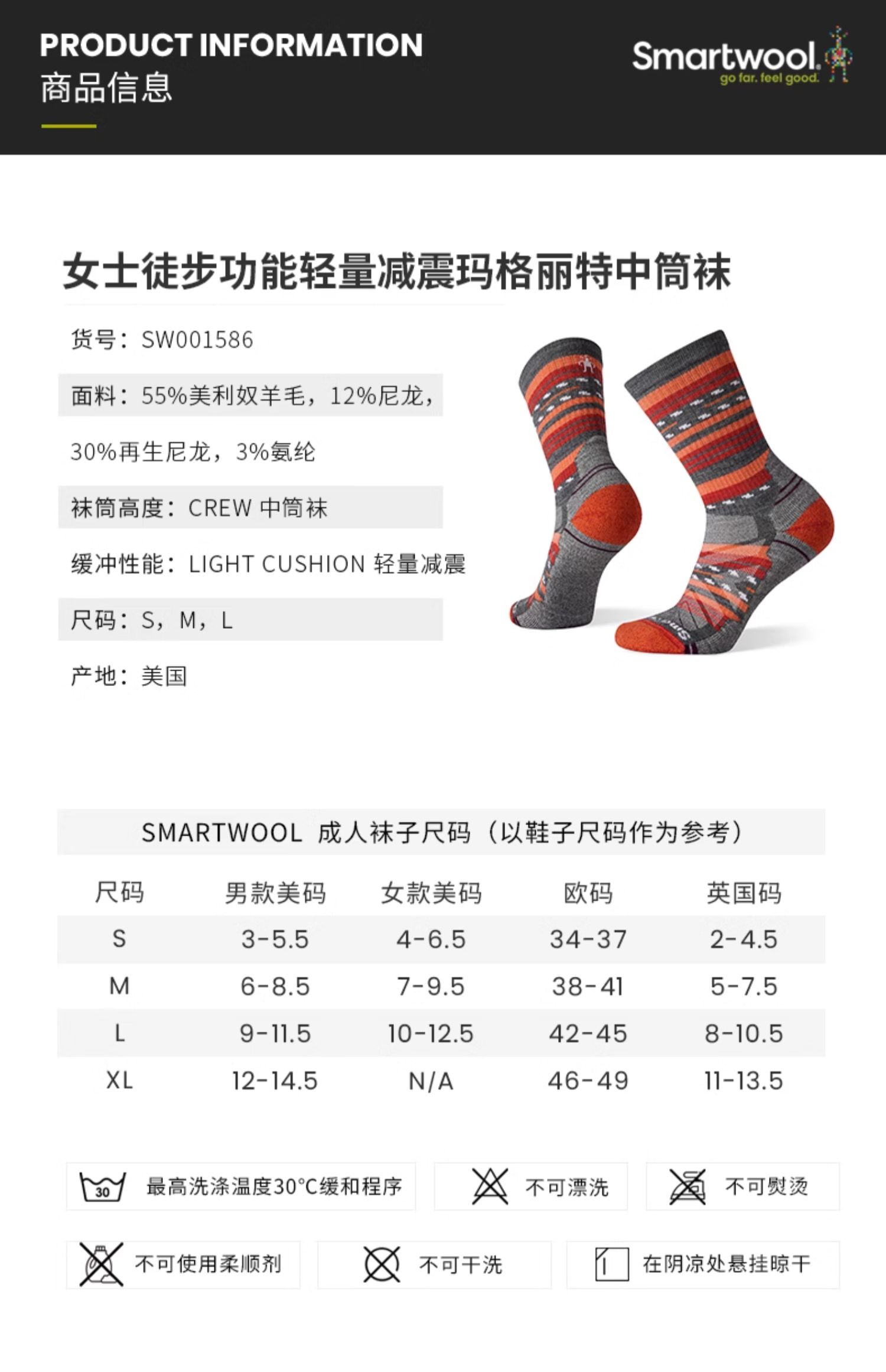 Smartwool女士徒步功能轻量减震玛格丽特中筒户外袜可机洗1586