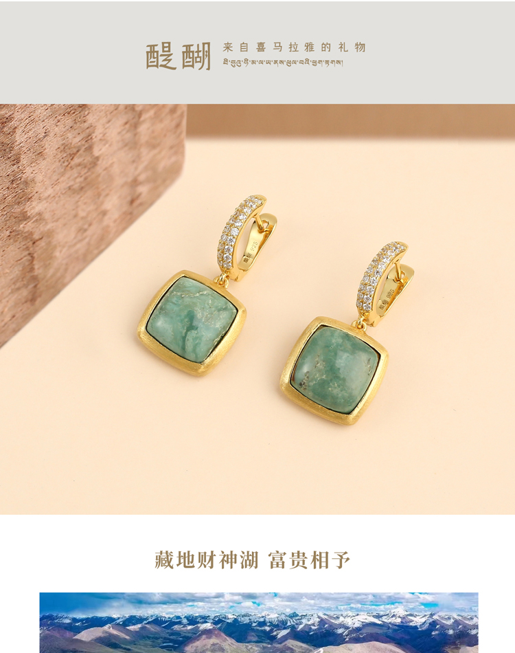 醍醐 思金拉措系列 方形松石项链 藏式气质饰品 925银