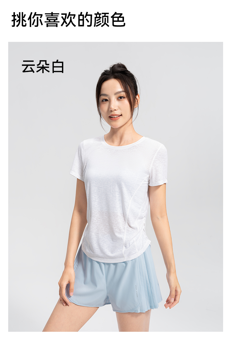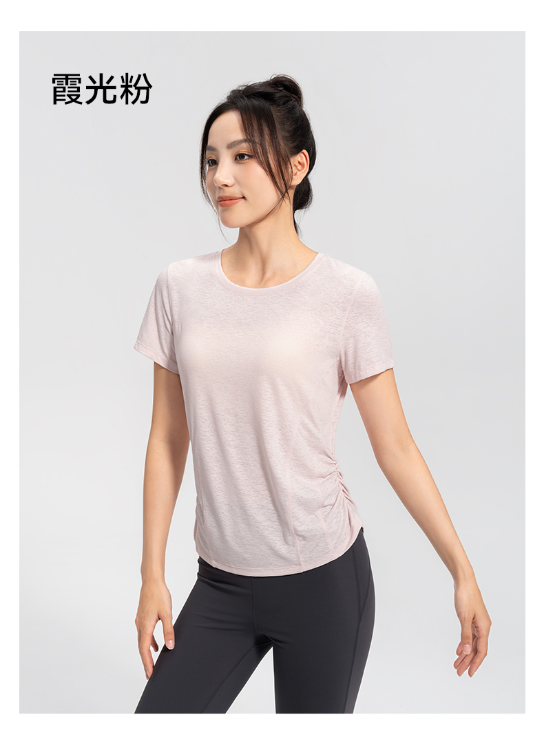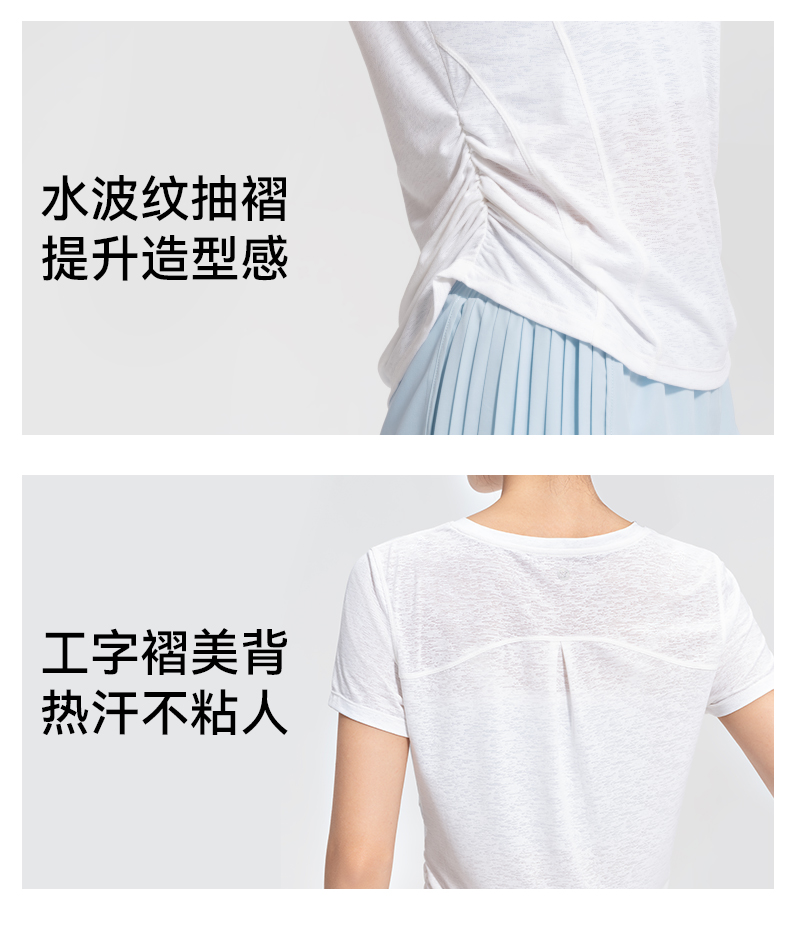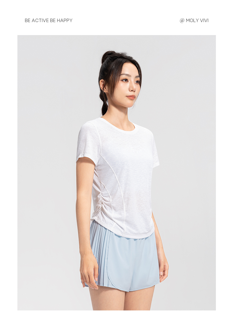 MOLYVIVI2025夏季新款轻柔花纱抽褶短袖T运动轻薄透气吸汗