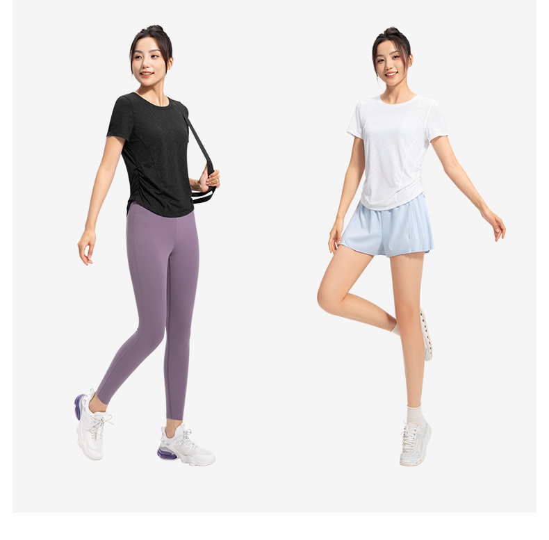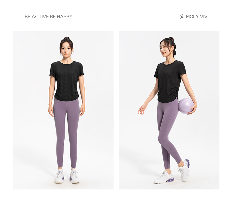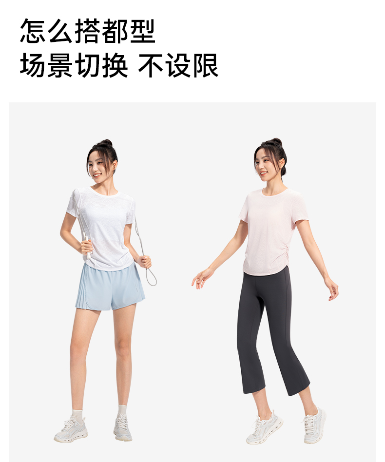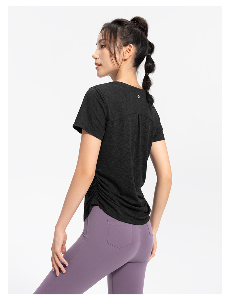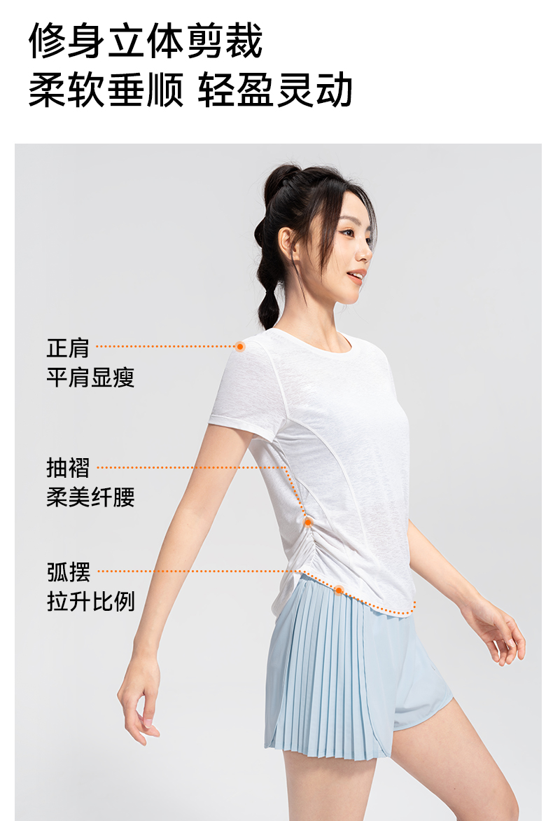 MOLYVIVI2025夏季新款轻柔花纱抽褶短袖T运动轻薄透气吸汗
