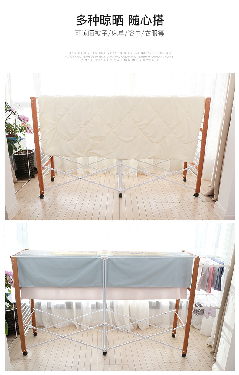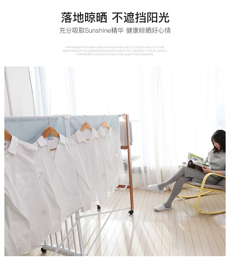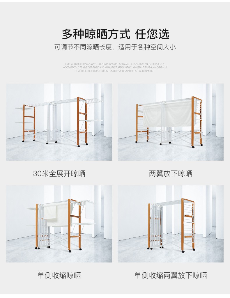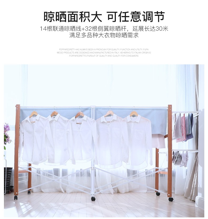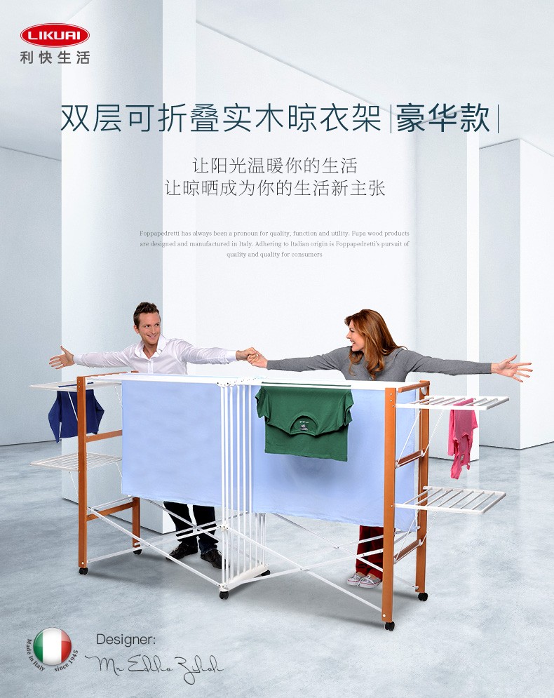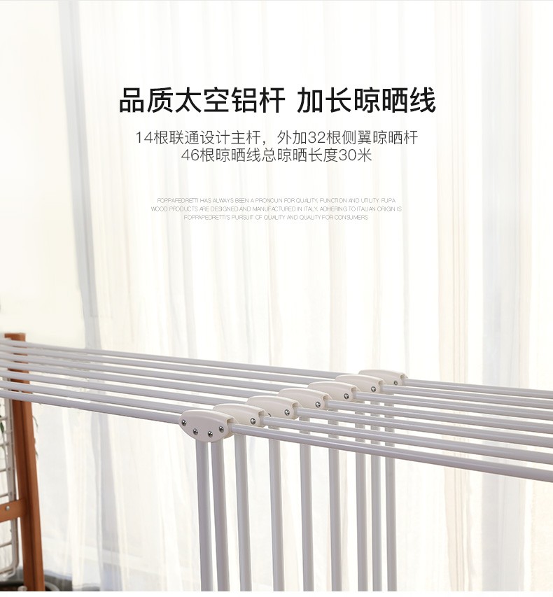 【6F】利快 豪华版实木晾衣架落地伸缩可折叠 意大利原装进口FOPPA-30M 晒被子