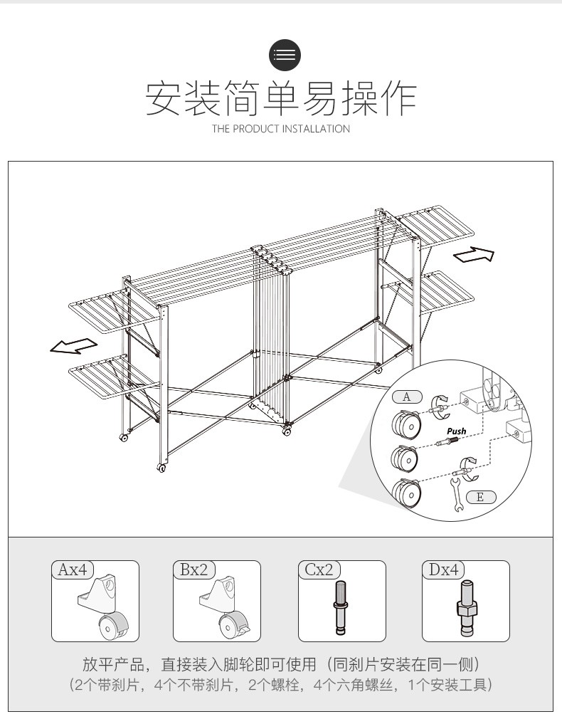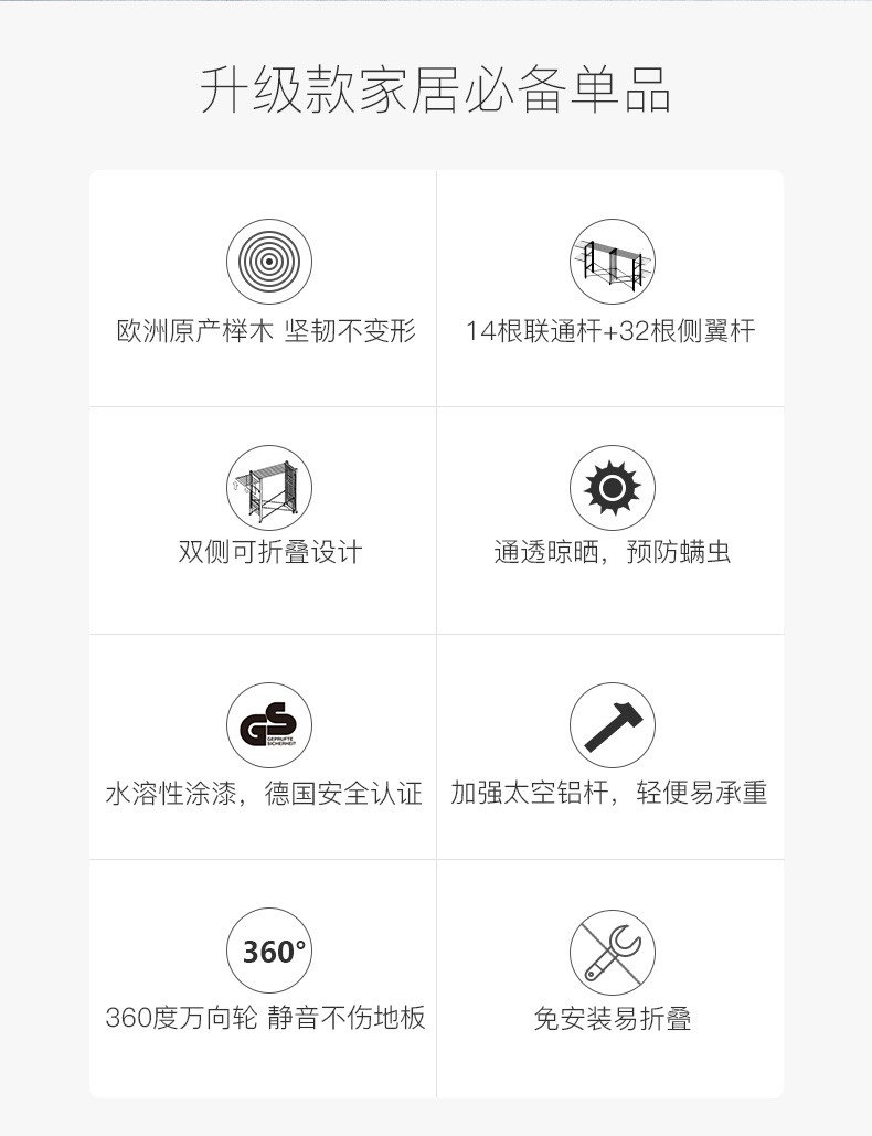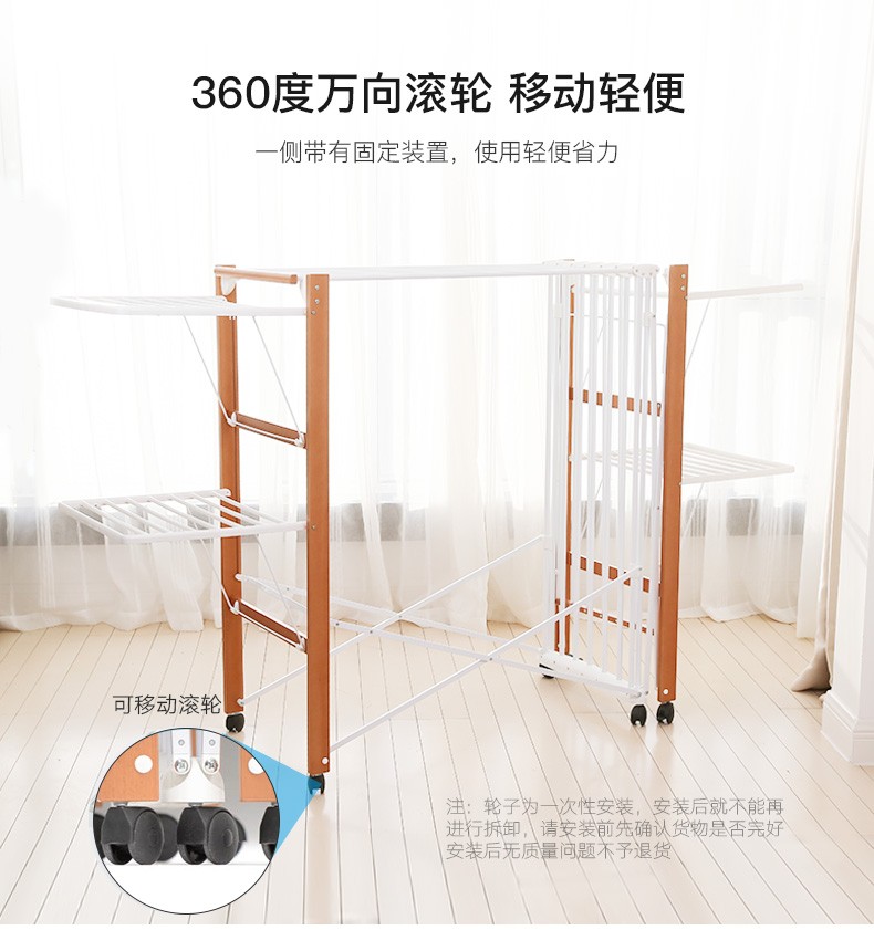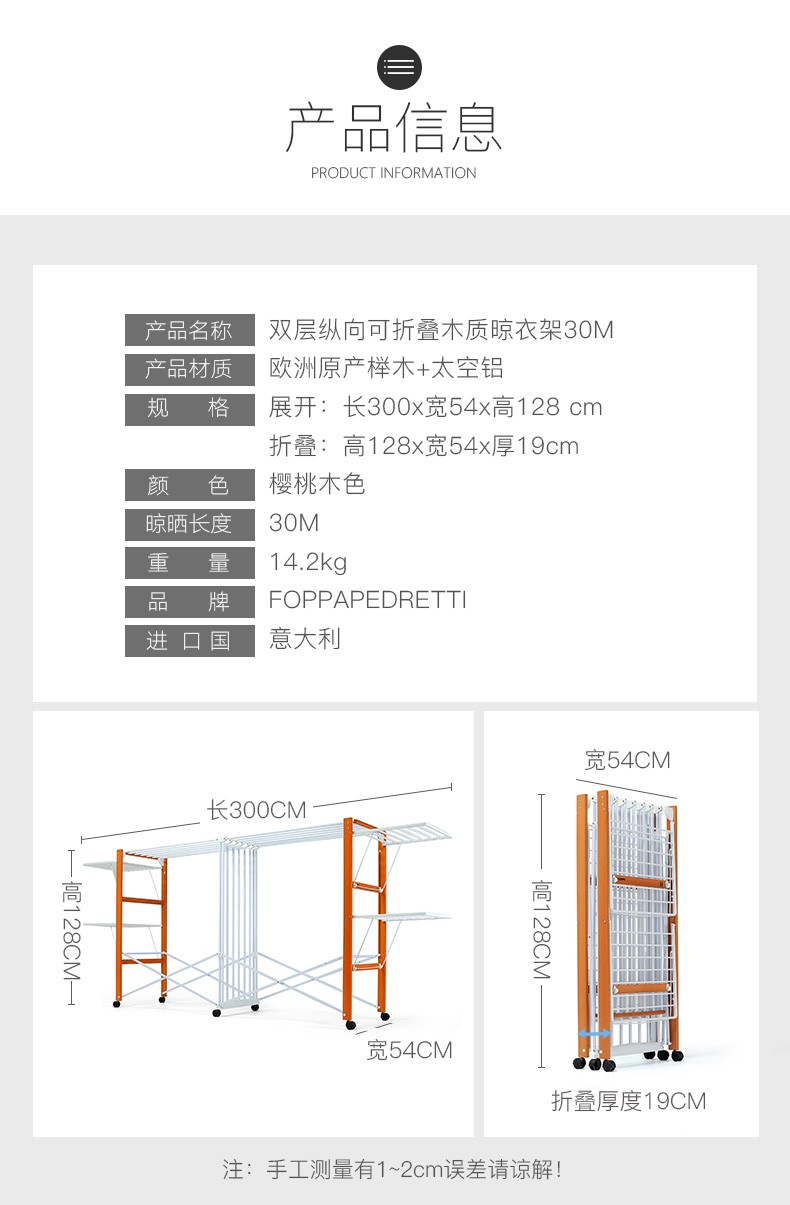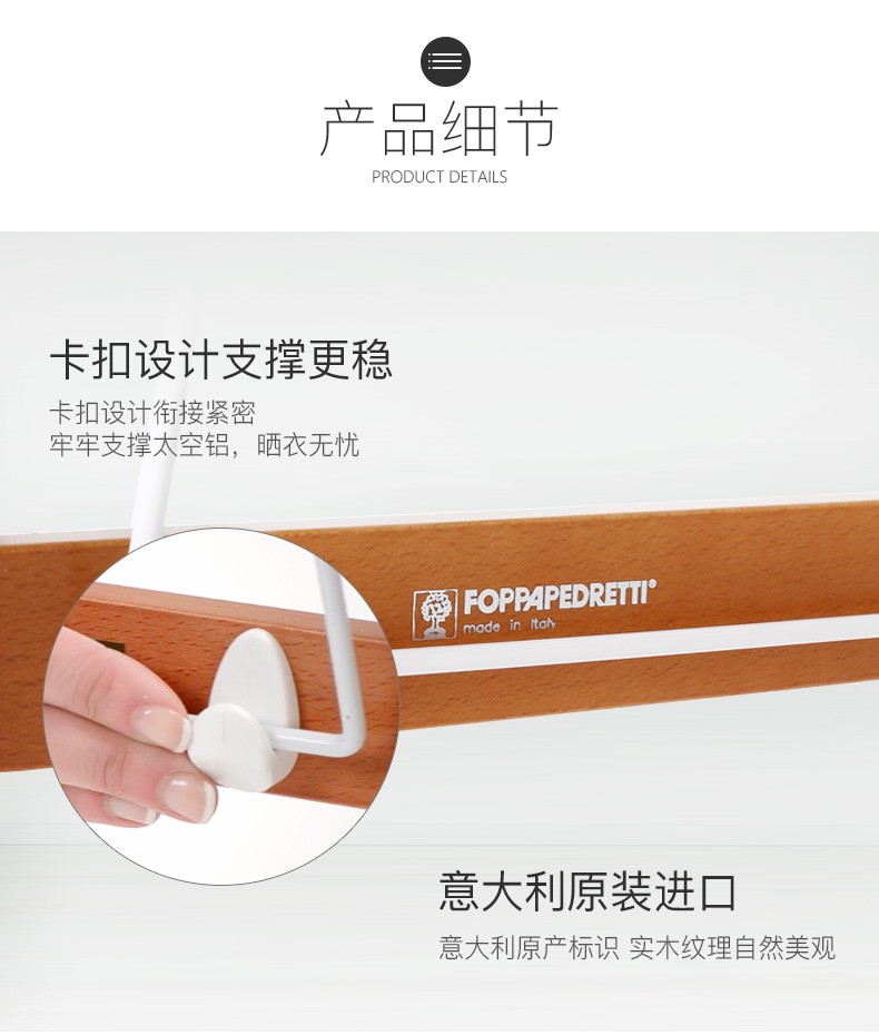 【6F】利快 豪华版实木晾衣架落地伸缩可折叠 意大利原装进口FOPPA-30M 晒被子