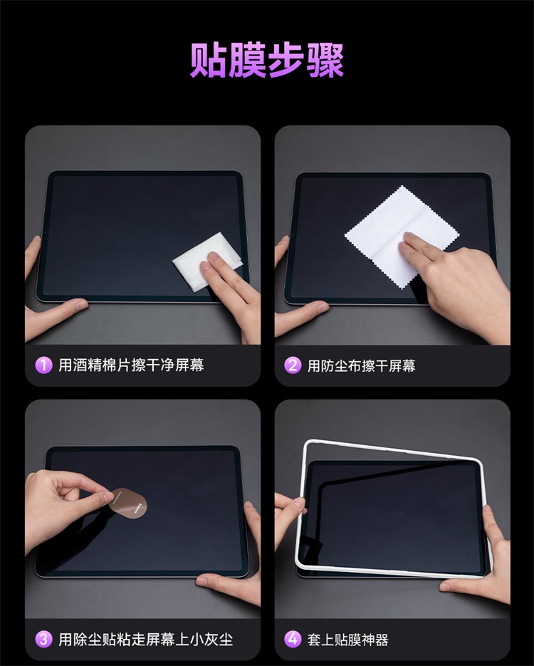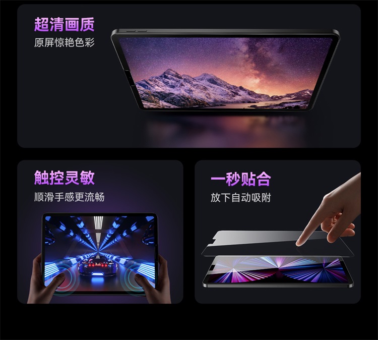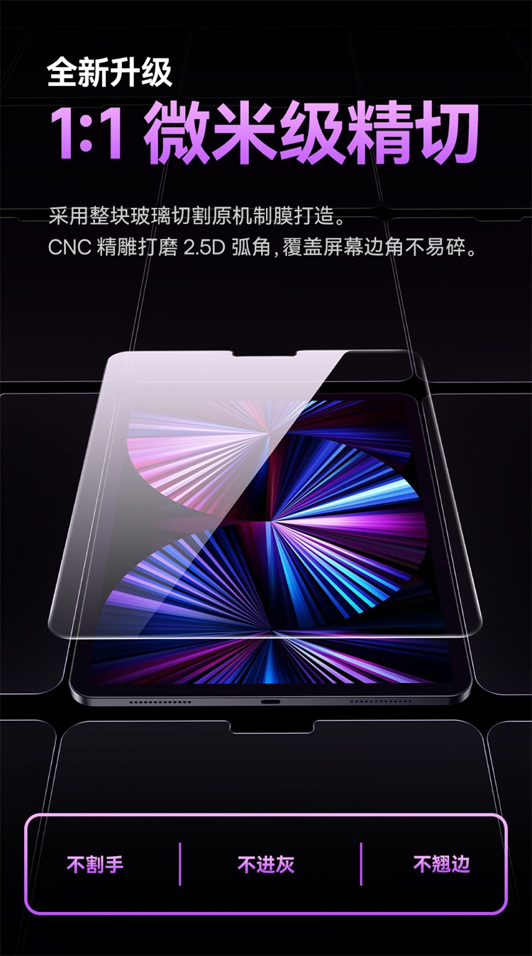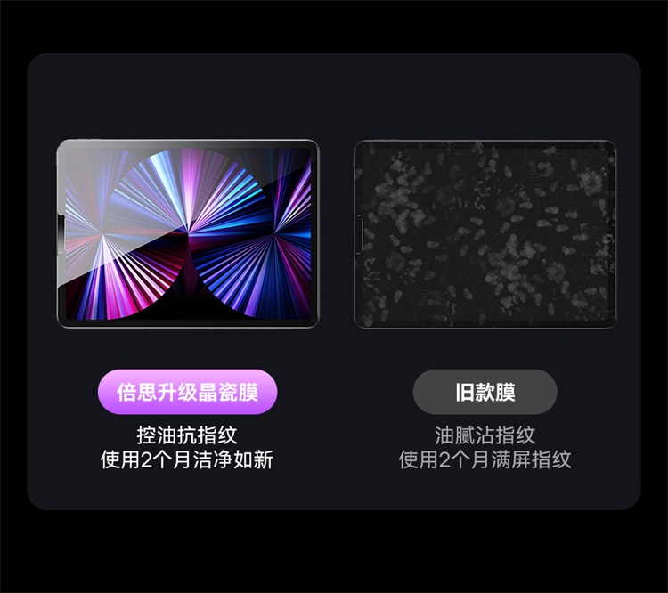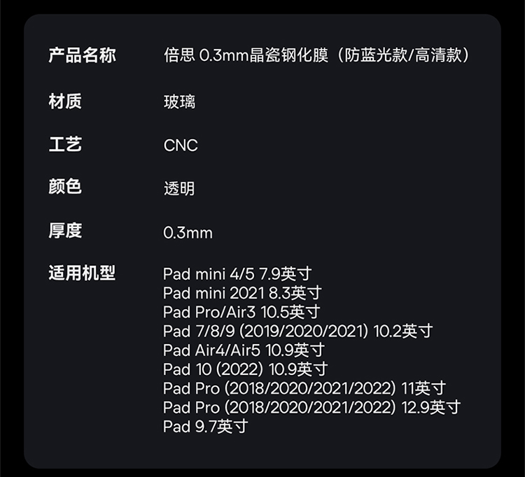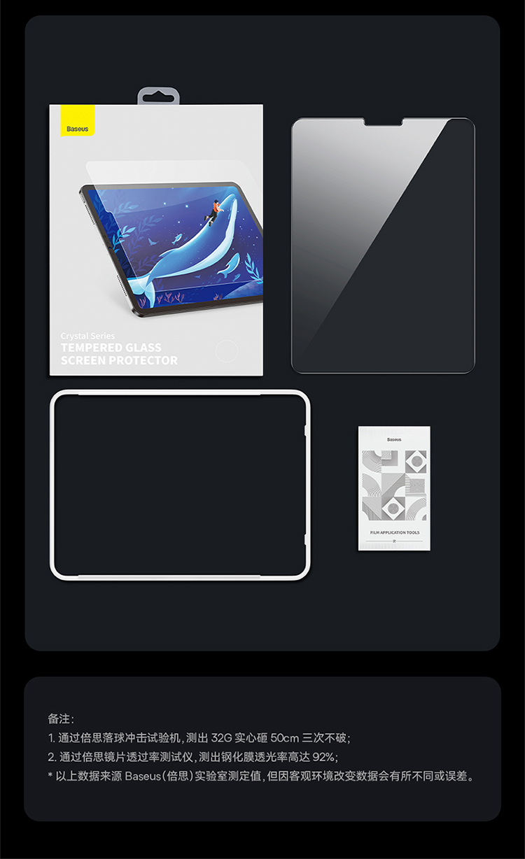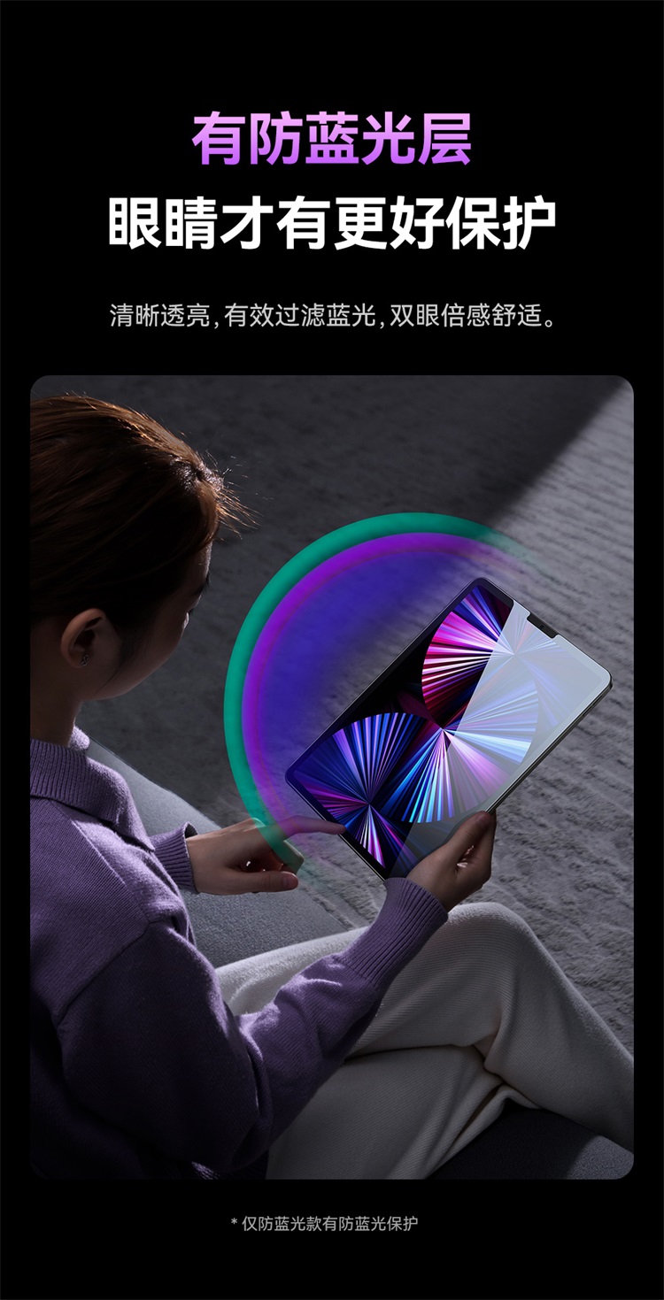 倍思 0.3mm晶瓷高清钢化膜 For Pad Pro(2018/2020/2021/2022)12.9英寸 透明(单片装 含:贴膜神器*1+清洁包*1)